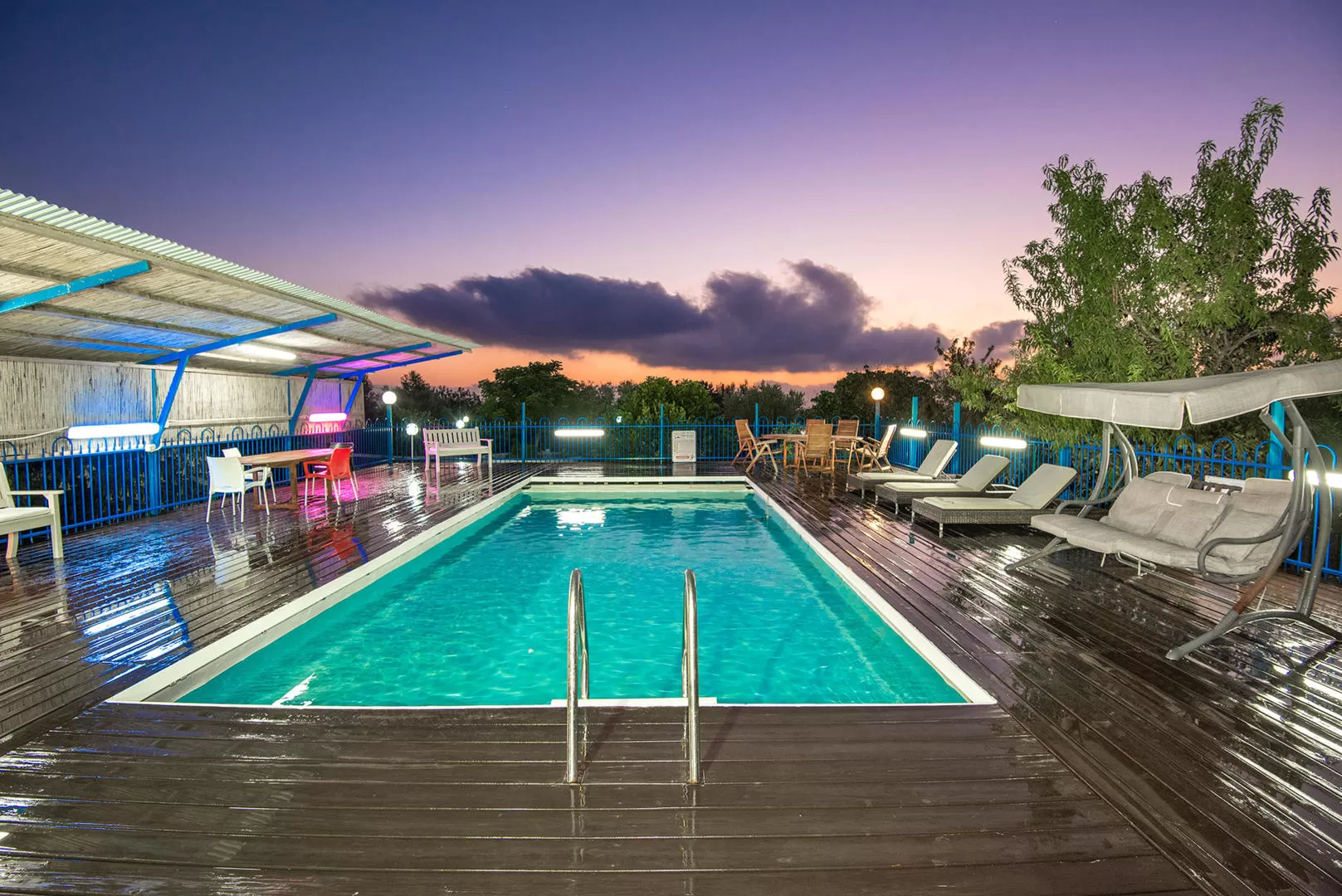 The cabin is built of wood handmade by the owner of the place to a very high standard. We really connected with the design, the cabin is located in a quiet and secluded area with a yard and a private pool. The small details charmed us and the attitude of the hosts was perfect, good people with courteous and personal service. We definitely plan to return there again many more times, God willing. Recommended Recommended Recommended!!!
