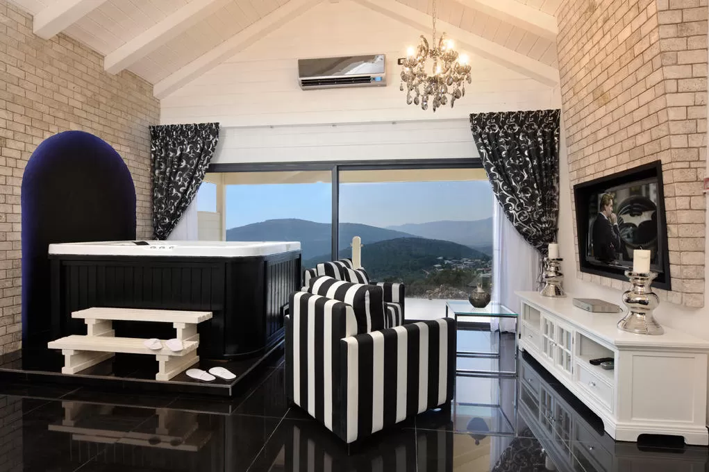 Afrion is located in the center of the Galilee, at the edge of the high Mount Hazon, facing a beautiful mountain landscape. When you arrive at the complex, you immediately feel the stark contrast between the rural and green vibe around it, and the luxury and grandeur of the suites and their luxurious pool. A hot spa jacuzzi facing an amazing view? Check. A heated pool with waterfalls and streams from every direction? Check. Refreshments, drinks, and sweets waiting for you in the suite? Check. The feeling here is that pampering is of the utmost value.