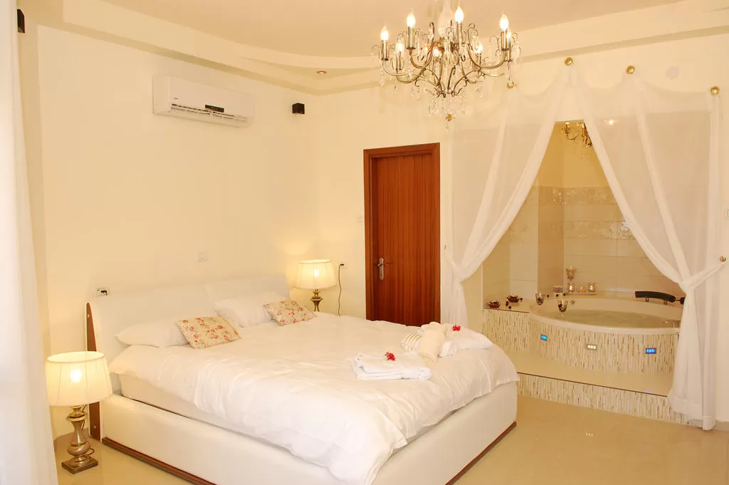 The outside area has a huge Jacuzzi Spa, a dry sauna and bbq corner. There are also two extra rooms on the lower level, for additional couples or pairs of couples. However, if you prefer an intimate vacation without intruders, Love Villa will open its gates midweek for single couples or two couples - at truly reasonable prices.
