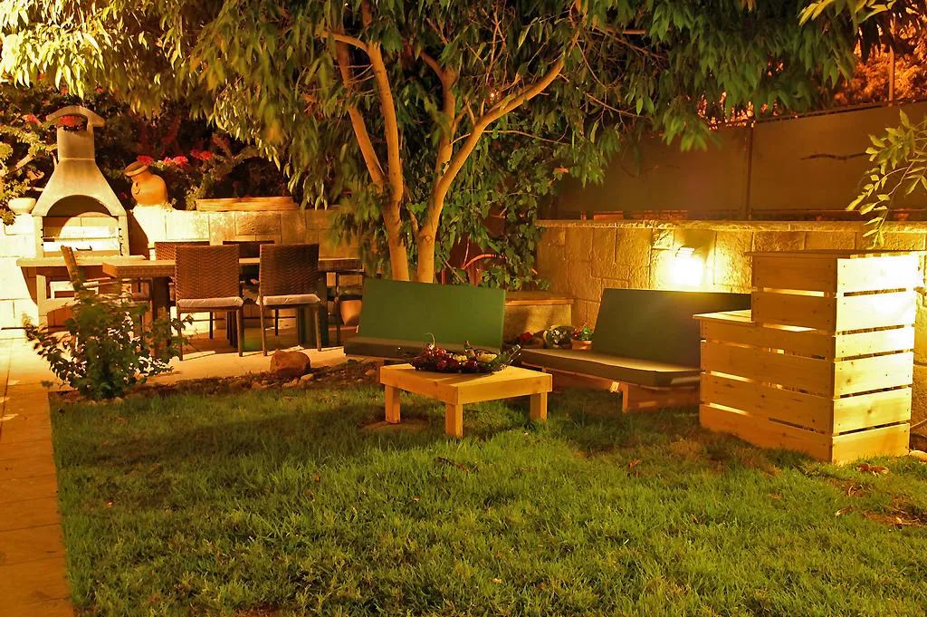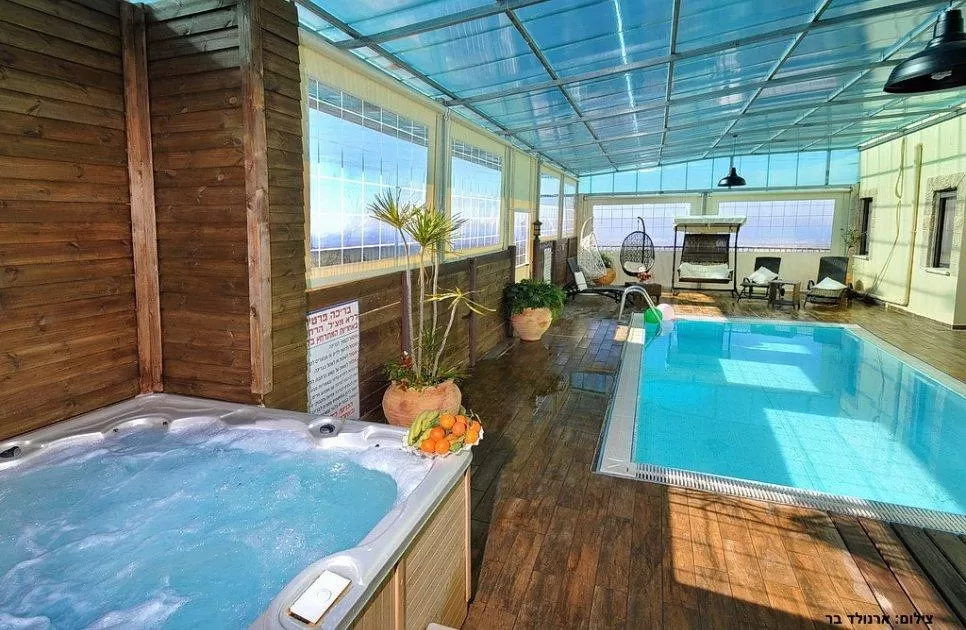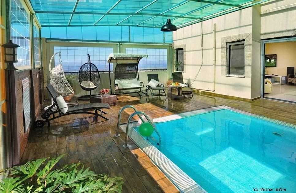 The complex offers two villas, and two more units located below the "Sivan" villa. Each of the villas has a separate entrance and its own accommodation area: a beautiful covered area that contains a heated swimming pool, a snooker table, seating areas, swings, a huge spa jacuzzi, and even a dry sauna (in the Sion villa only). Another outdoor area includes a ping pong table, a barbecue area and an outdoor television screen.
