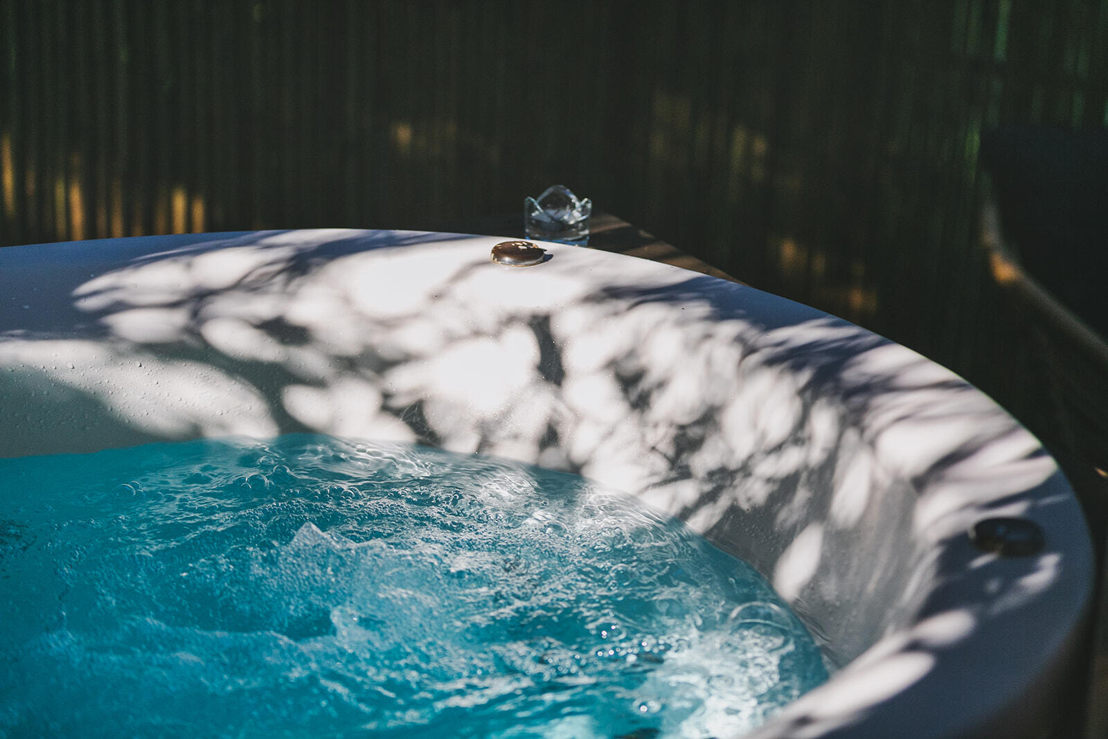 An all-wooden B&B, rustically designed in the grove. complete silence. intimate. There is privacy and there is a view. Two private balconies, one in the front and one in the back from which you go to another outdoor jacuzzi isolated in the forest. (We didn't use it because it was cold). The interior design is flawed by a lack of planning.