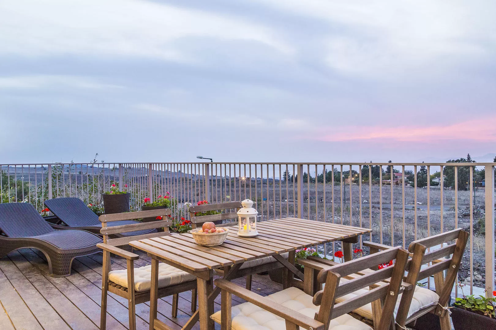 • מרפסת הפונה לנוף פנורמי, מתאימה במיוחד לארוחת הבוקר (הפרטיות חלקית)