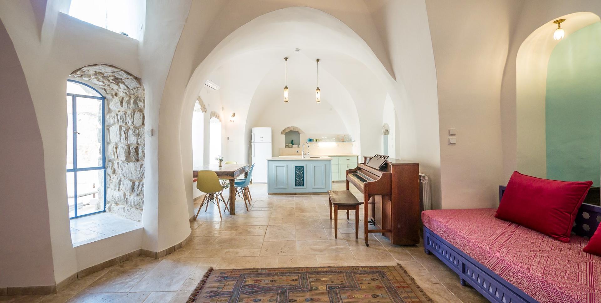 בכל הסוויטות תמצאו מיטה זוגית queen size 180. שטיחים וכריות יפהפיים מטורקיה, מרוקו וקשמיר נאספו בעת טיוליהם של המארחים ומצאו את מקומם הטבעי בחדרים המשוחזרים. לכל היחידות יש גישה למרפסת הגג, עם הנוף המרהיב והשקיעות.