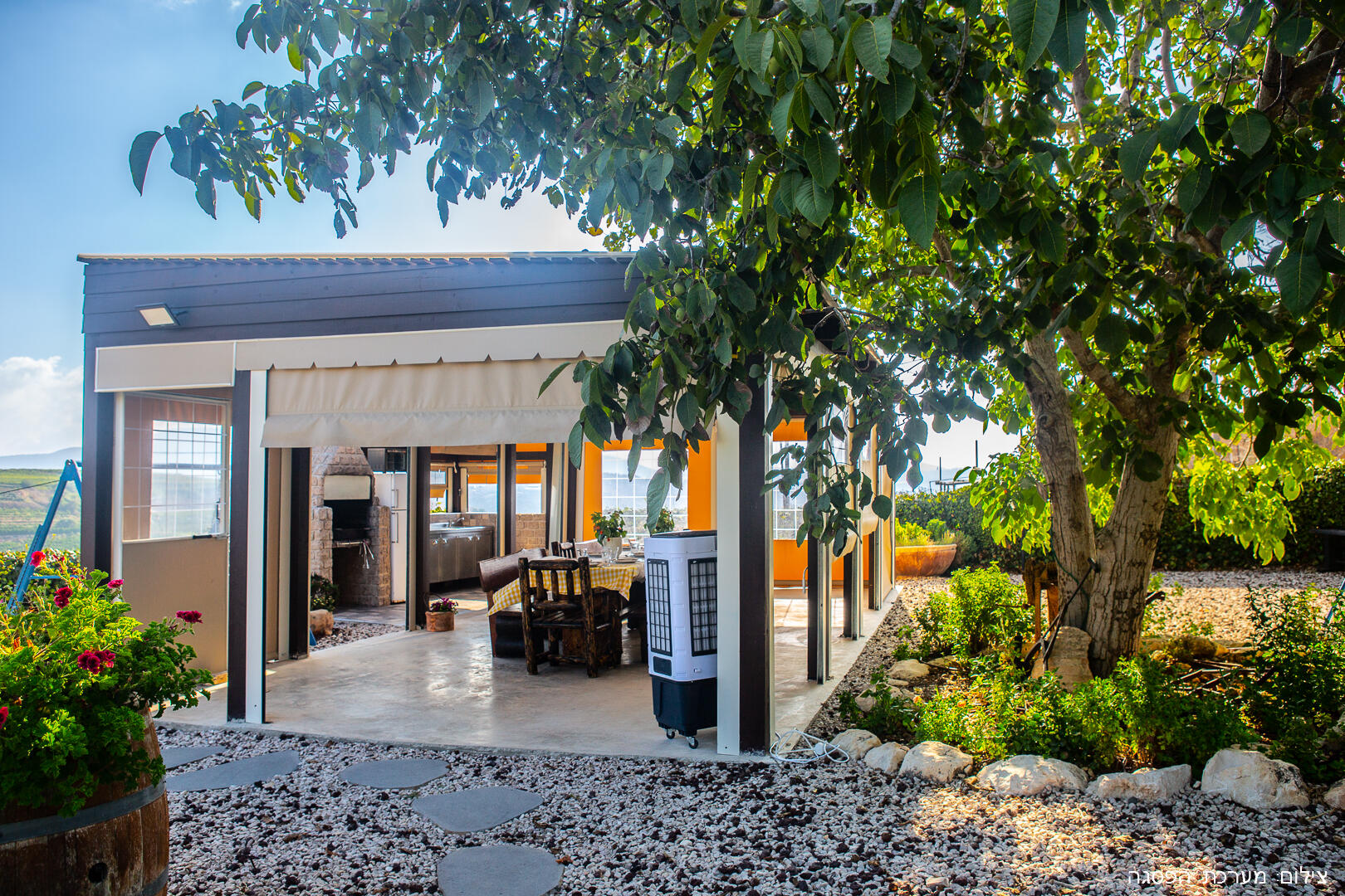 There are five boutique wineries in the Ben Zimra vineyard - it's worth doing a tasting tour. Free bicycles are available to guests that can be taken for trips in the area. The outdoor complex is well-kept and overlooks the landscape with a variety of seating areas, including a barbecue corner, a dining table and a grape arbor. Fruit trees such as figs, cherry, grapes and apricots are available to guests. There is a boutique hotel service here.