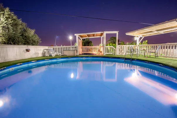 The shared complex faces an excellent view of the Amud Stream, the Arbel Cliff and the Sea of Galilee. It contains a 7-meter-diameter saltwater pool (without chlorine) surrounded by seating areas and a spa jacuzzi. This area is located not far from the host's house, but is successfully hidden by bamboo to prevent a lack of privacy.