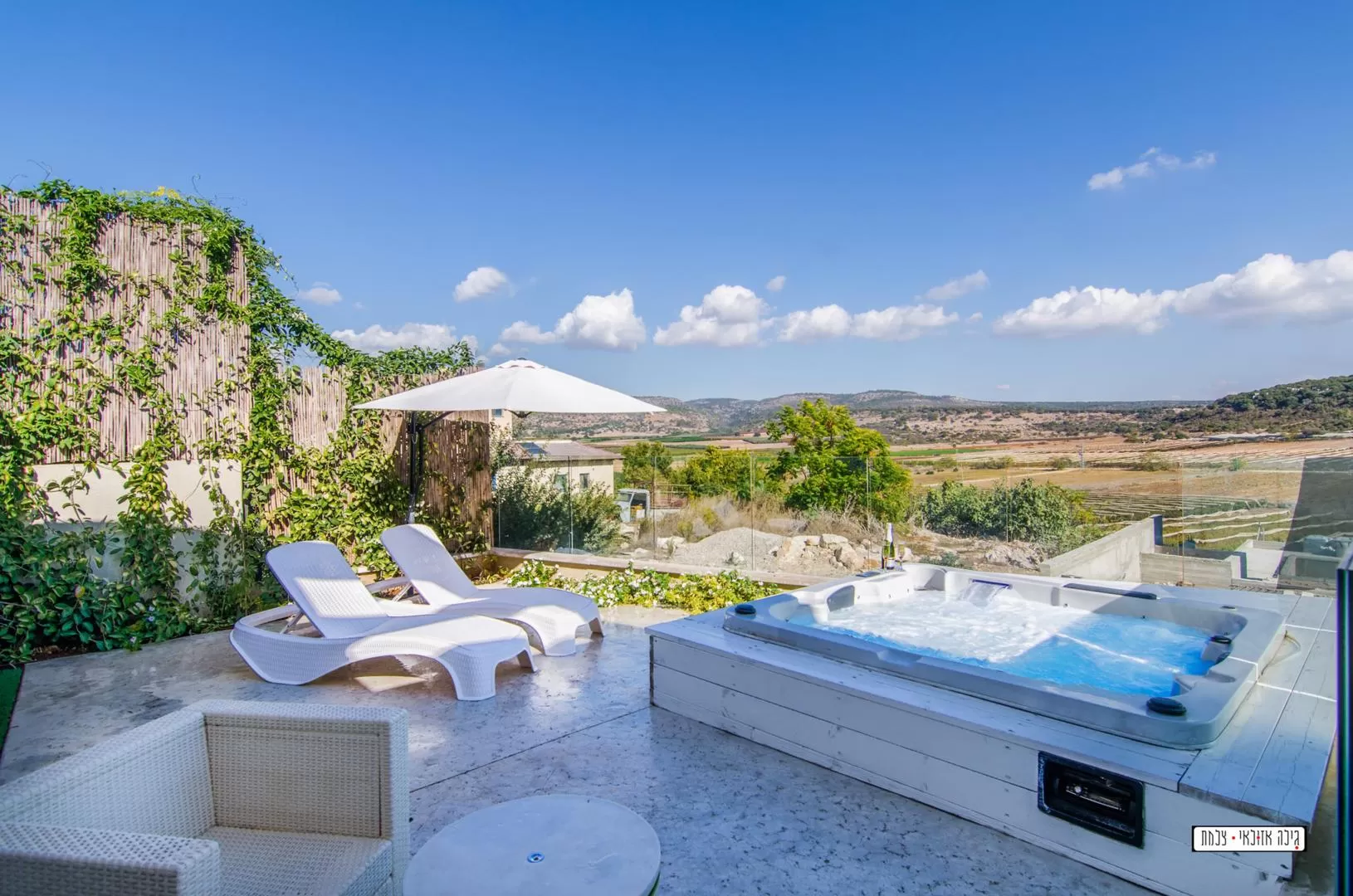 There aren't many complexes like this, I think to myself as I finish my visit to the "Lev Carmel Estate" in Kerem Maharal. And I'm not just talking about the relative proximity to the central area, which allows those who want a little jump abroad 40 minutes from Tel Aviv. I'm talking about the fact that this place is definitely abroad in terms of the standard of construction, thinking, and design. The location itself is crazy, on a hill that looks far and wide toward open fields and green mountains. There's an amazing mini-villa here designed for a couple who wants to find themselves on the cover of a design magazine, and another 4 intimate, beautifully designed suites that also take advantage of the abundance that nature and the hosts have bestowed on this special place.