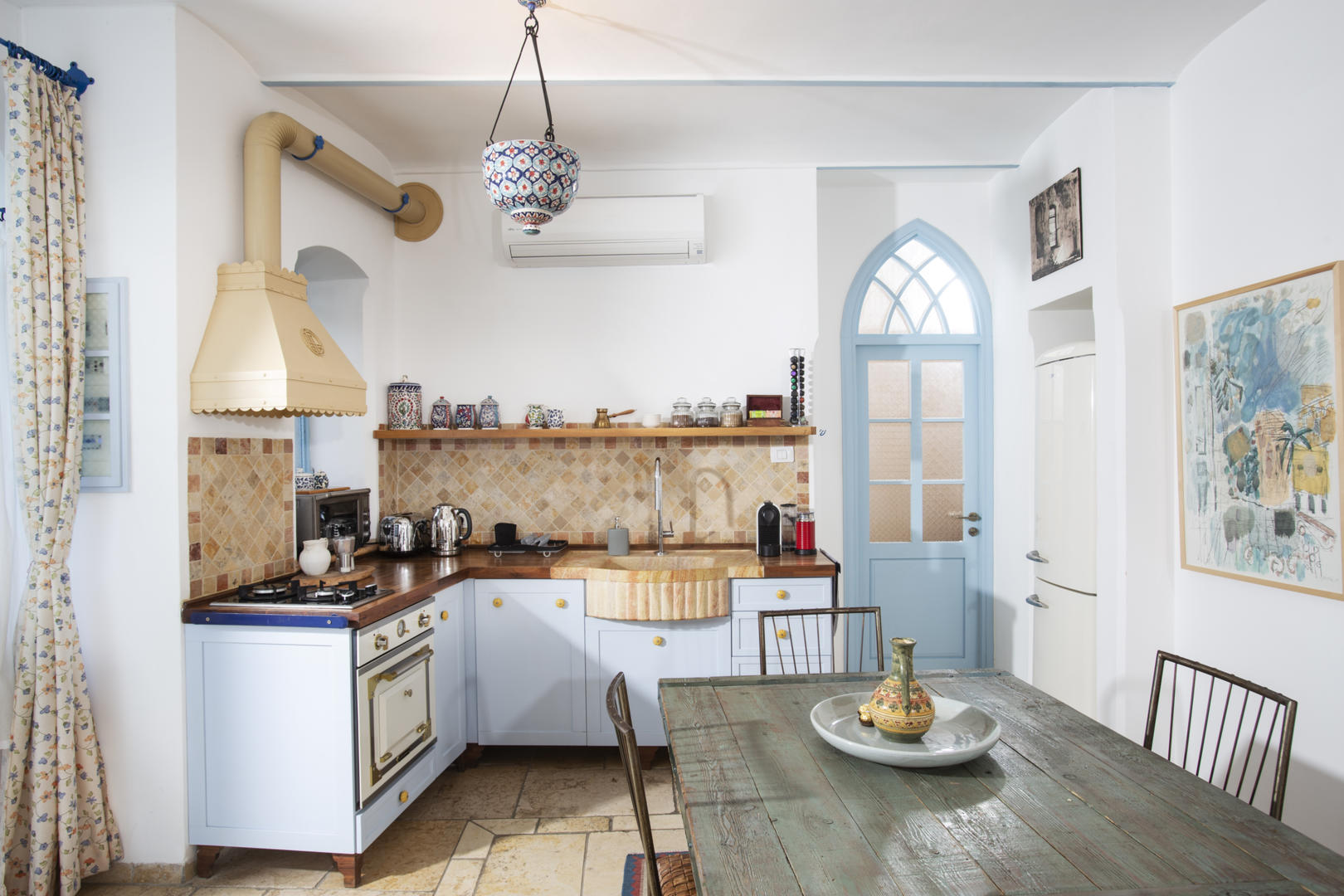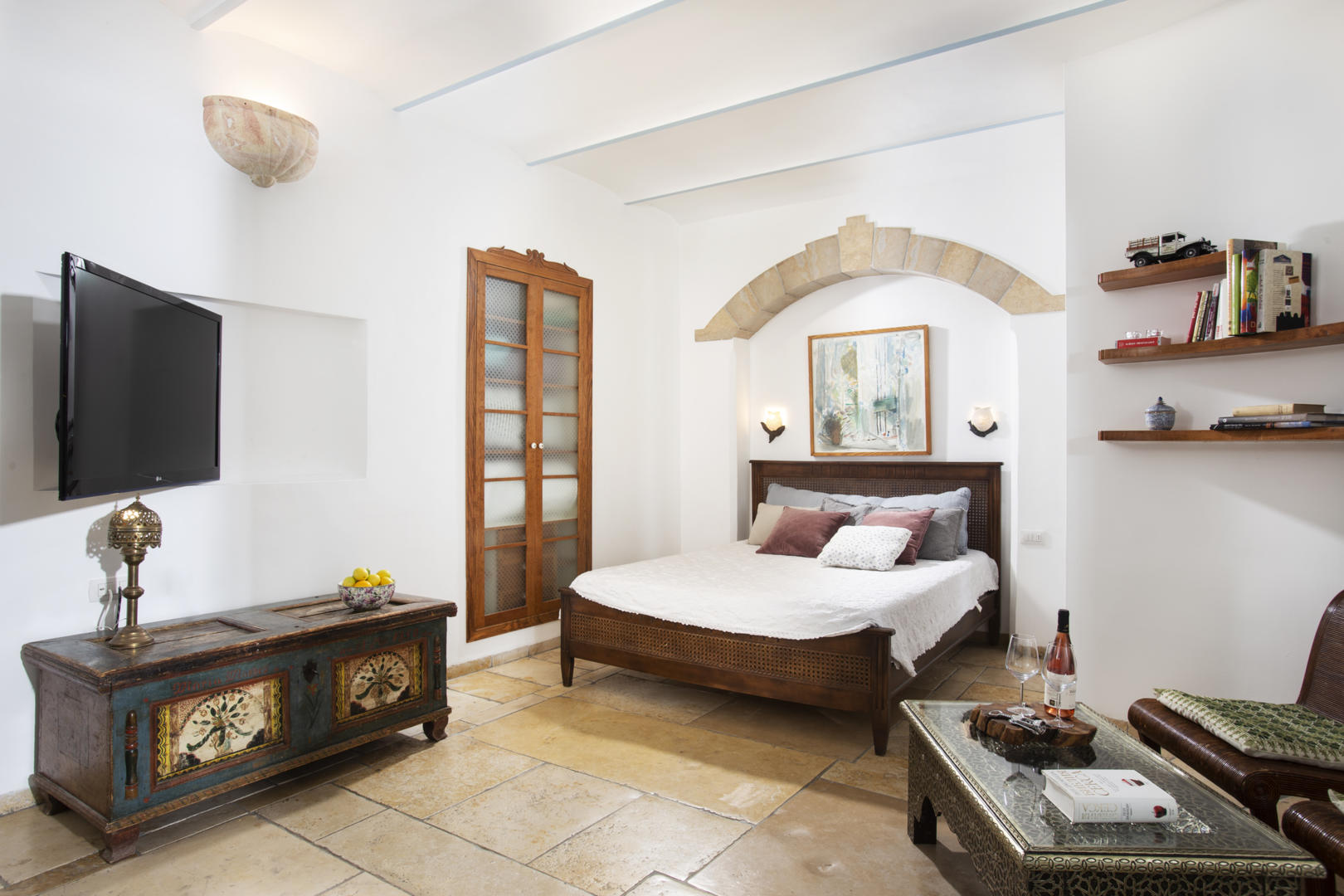 Ein Kerem has always offered something different, even European, but with a luxurious oriental scent. This neighborhood on the outskirts of Jerusalem always surprises with its multitude of entertainment options, dining options, and also the option of contemplating the architectural landscape and the power of the green nature in which it is located. "Above the Spring" is a spacious suite that allows you to experience all of this between decorated stone walls, arched and azure windows, a stone-paved balcony with complete privacy, and a bathtub from another world.