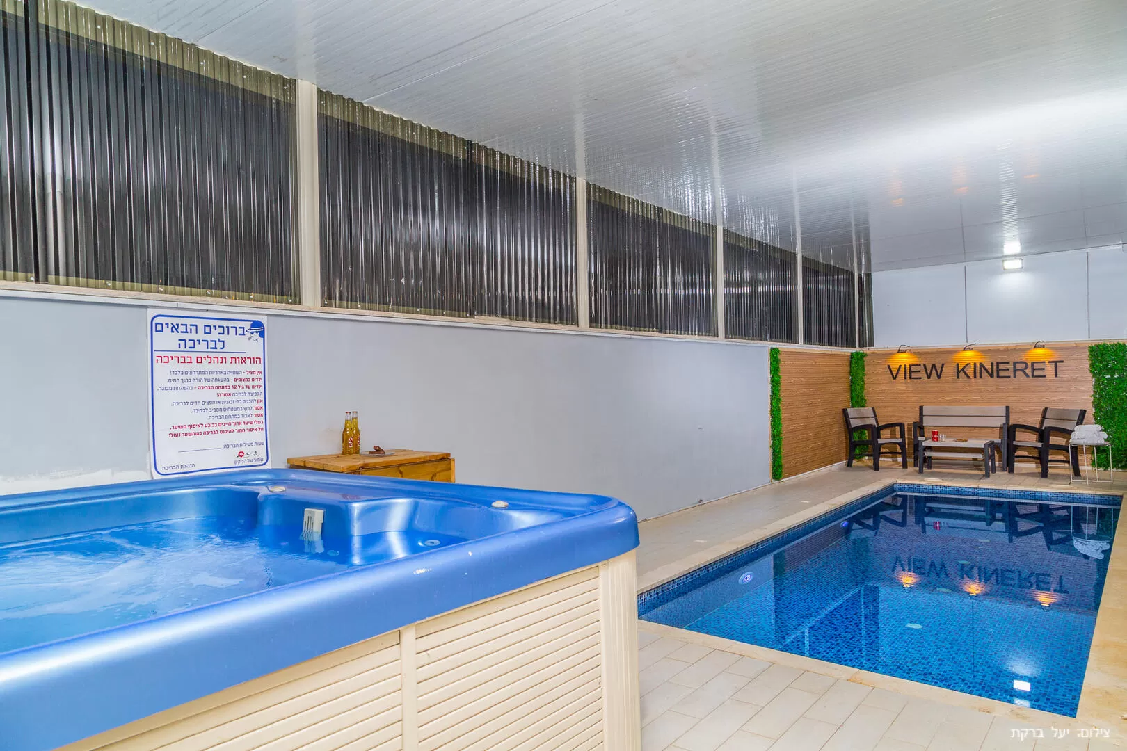 Just before entering the villa, pass by the outdoor complex - there is a small balcony surrounded by an amazing view of the Sea of Galilee, a barbecue area (charcoal) and a cute dining area. In the other part of the complex, which is separated by a glass gate (with a child lock), there are the treats - a large spa jacuzzi and a beautiful pool sunk into the floor, heated and covered - from here you can also see the magical view. The atmosphere in this part is super intimate and warm, and allows for maximum privacy and comfort.