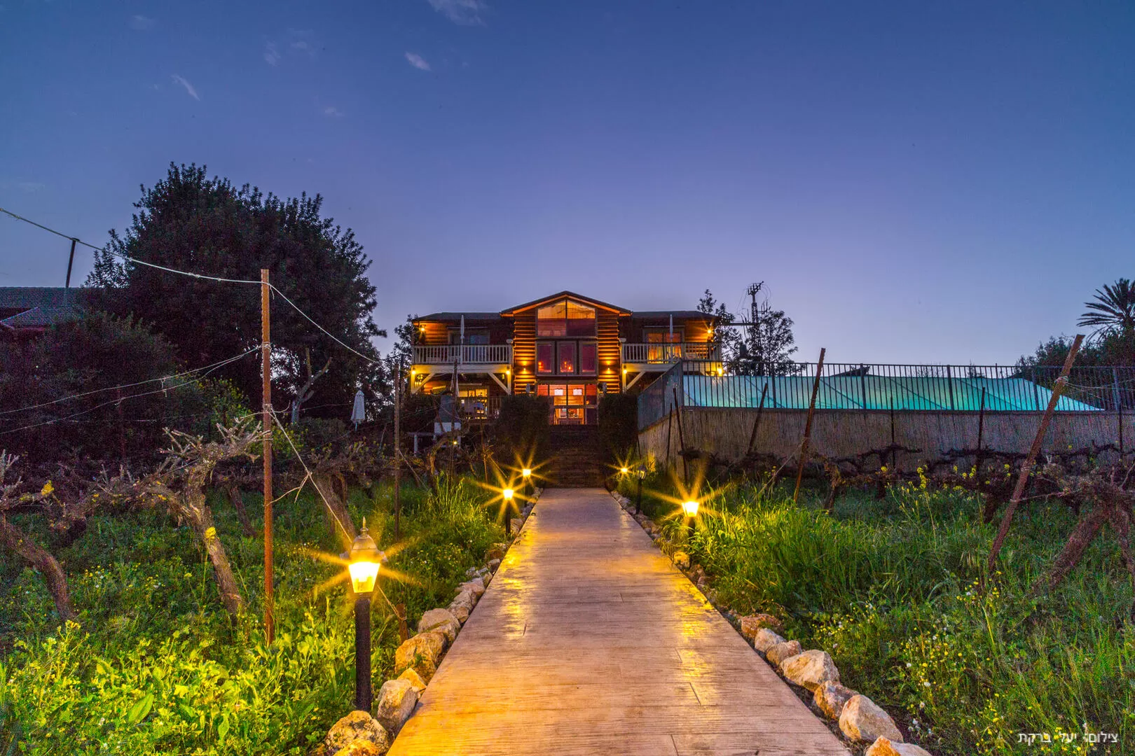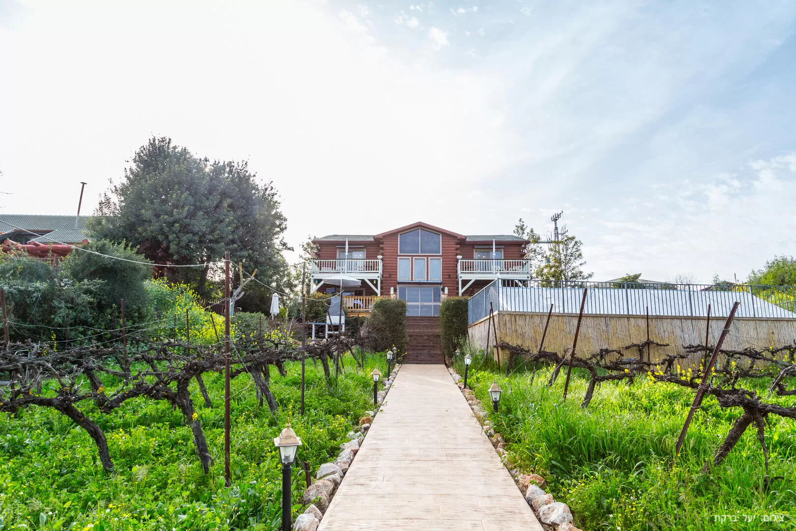 Imagine that you have arrived in a small American village, with a European atmosphere and a view of the Galilee - because that is exactly the feeling you get when you walk along the paved path between the vineyards on the way to the impressive wooden structure. The Naftali Estate stands in all its glory before our eyes and tells its own story: it was specially brought from the United States to the Galilee, and became one of the most extraordinary vacation estates we have seen.