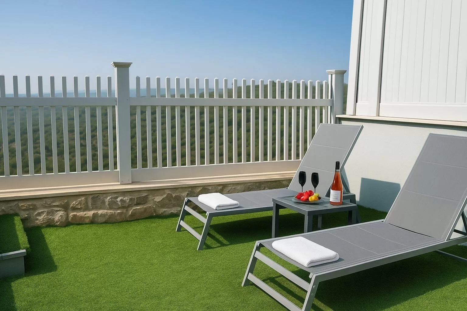 Next to the pool there are two sunbeds that allow you to relax and simply enjoy the open mountain view.