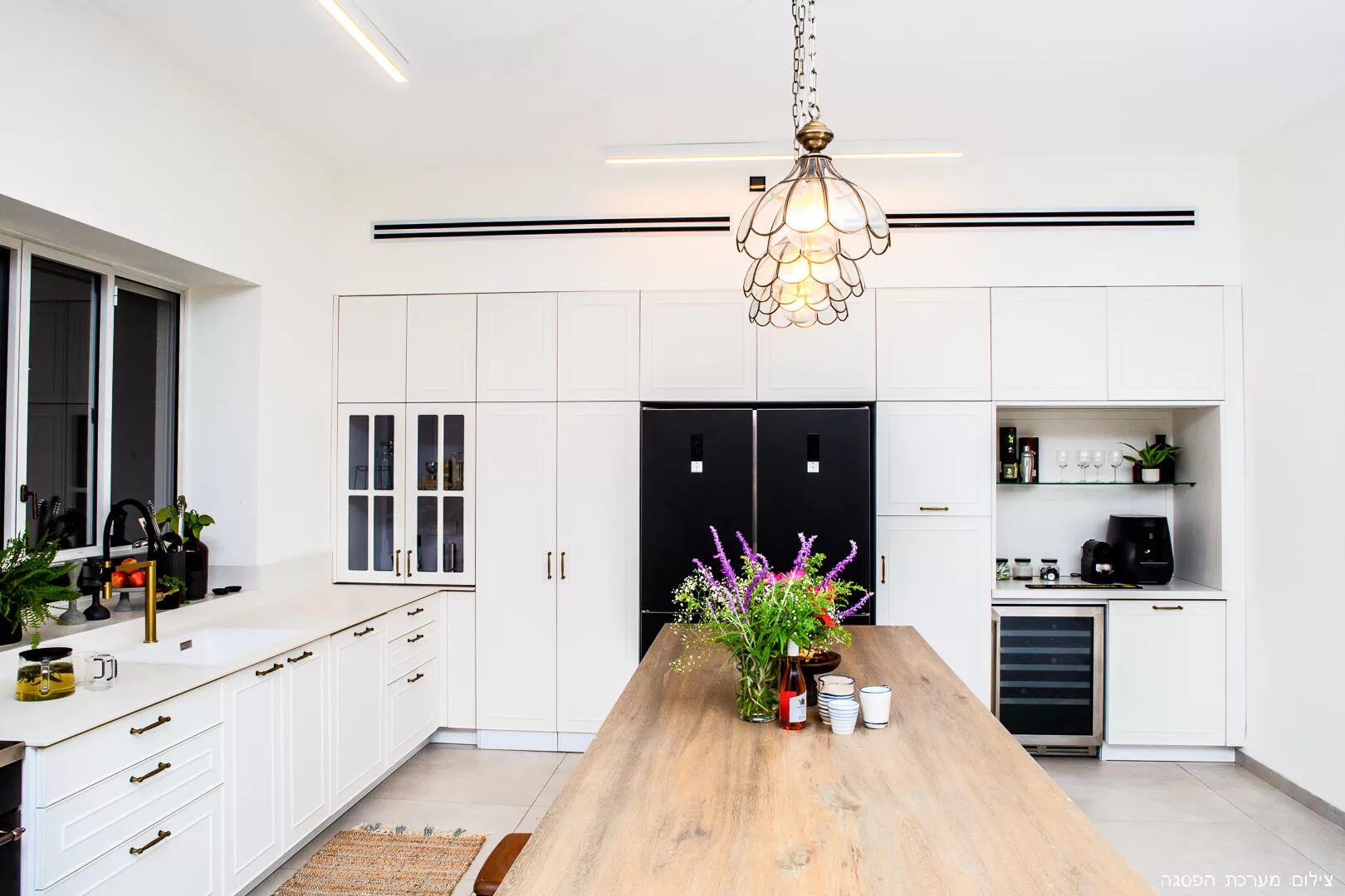 The 40-square-meter Michal Suite is designed as a completely open space, including a kitchen for easy cooking with a luxurious and comfortable island, a microwave, a water bar, a small refrigerator, an electric stove, a kettle, and more. In the space you will also find a sofa bed, a 1.60-meter double bed, a smart TV that can be adjusted in all directions, a wardrobe, and the perfect treat for children - a craft table specially adapted for them and a wall board with colored chalks for free drawing. A fully equipped shower with towels and toiletries also awaits in the adjacent space.