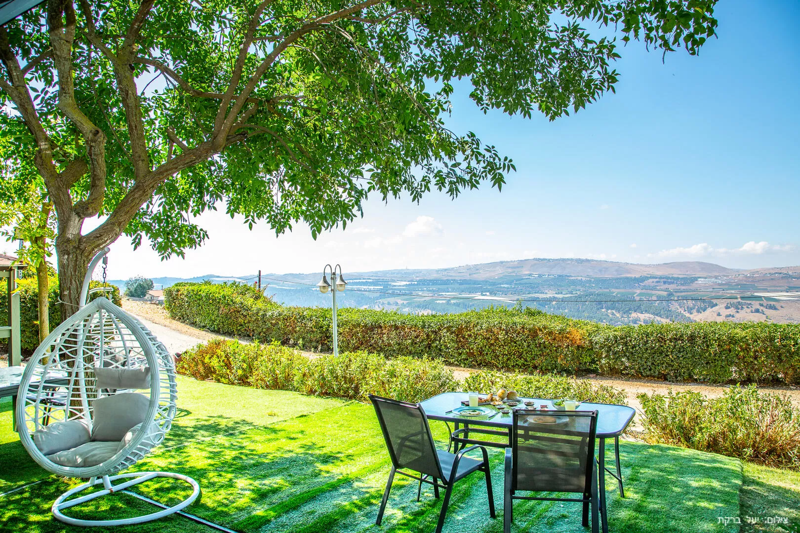 Each cabin has a private decked balcony, and a large yard with a swinging hammock and seating areas. There is no privacy between the cabins’ yards, but there is plenty of space, which makes the place feel large and open. Also in the yard you will find a dining table and a barbecue area, and the highlight – an amazing view of the Galilee that makes you want to just sit and stare at it for hours.