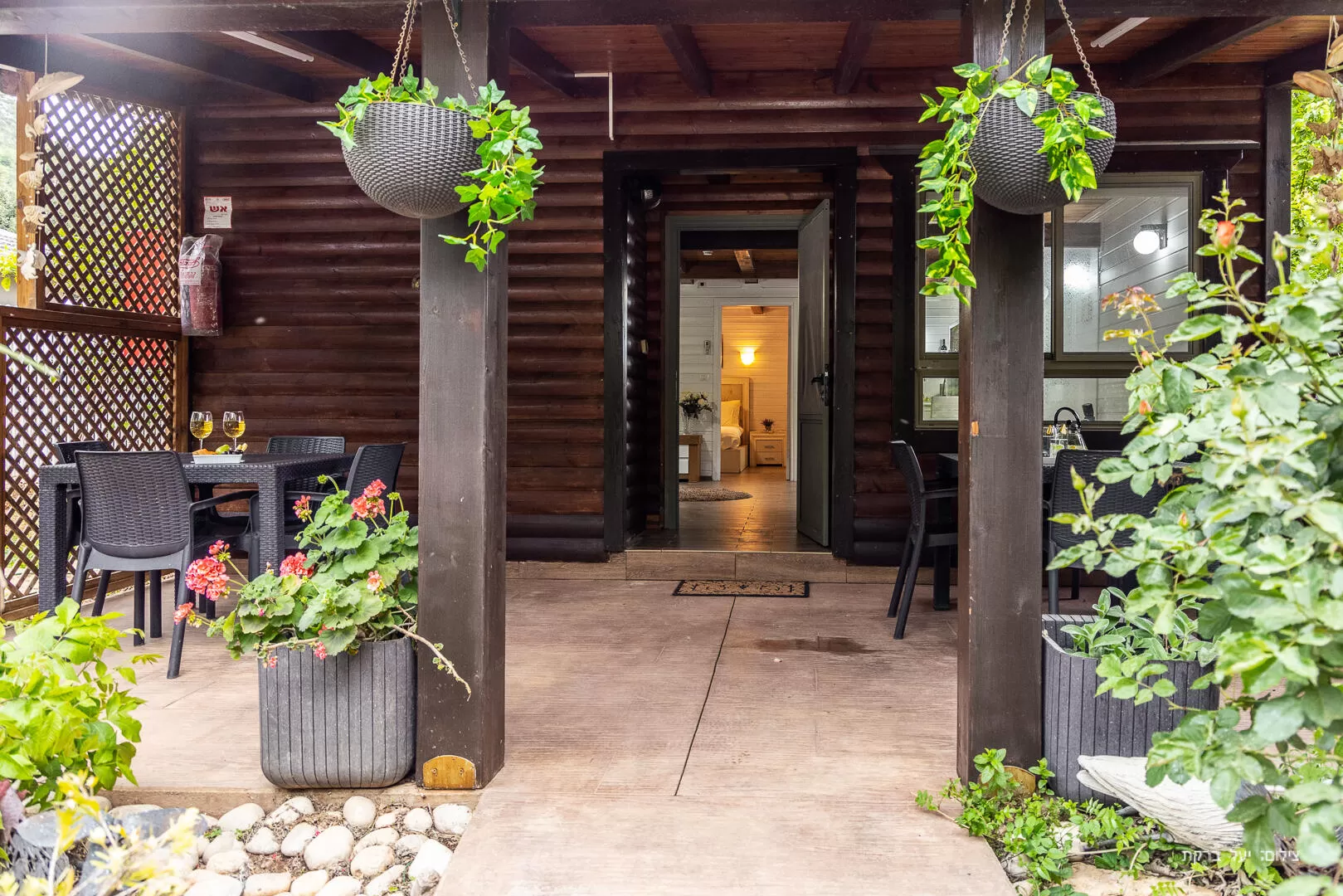 A stream of the Sheffer Stream passes through the complex and flows most of the year. A private body treatment and cosmetics clinic in the complex. An especially large jacuzzi in each cabin.