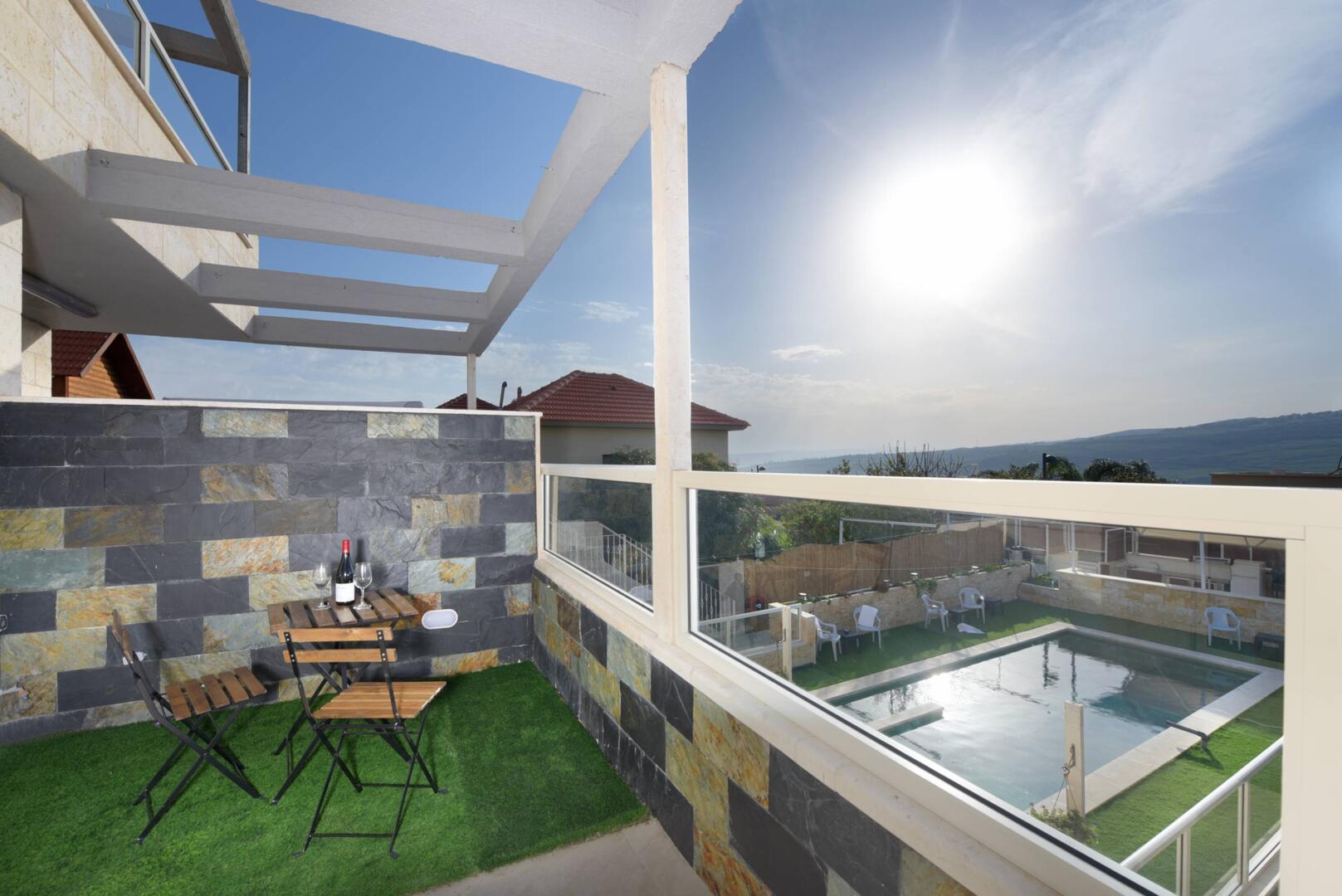 Those who wish can sit on the other side of the pool, in a shaded corner, and enjoy a family meal, and on the upper level there is a large, shared roof terrace, great for sitting for breakfast in front of the beautiful view - even the Sea of Galilee peeks out from there.