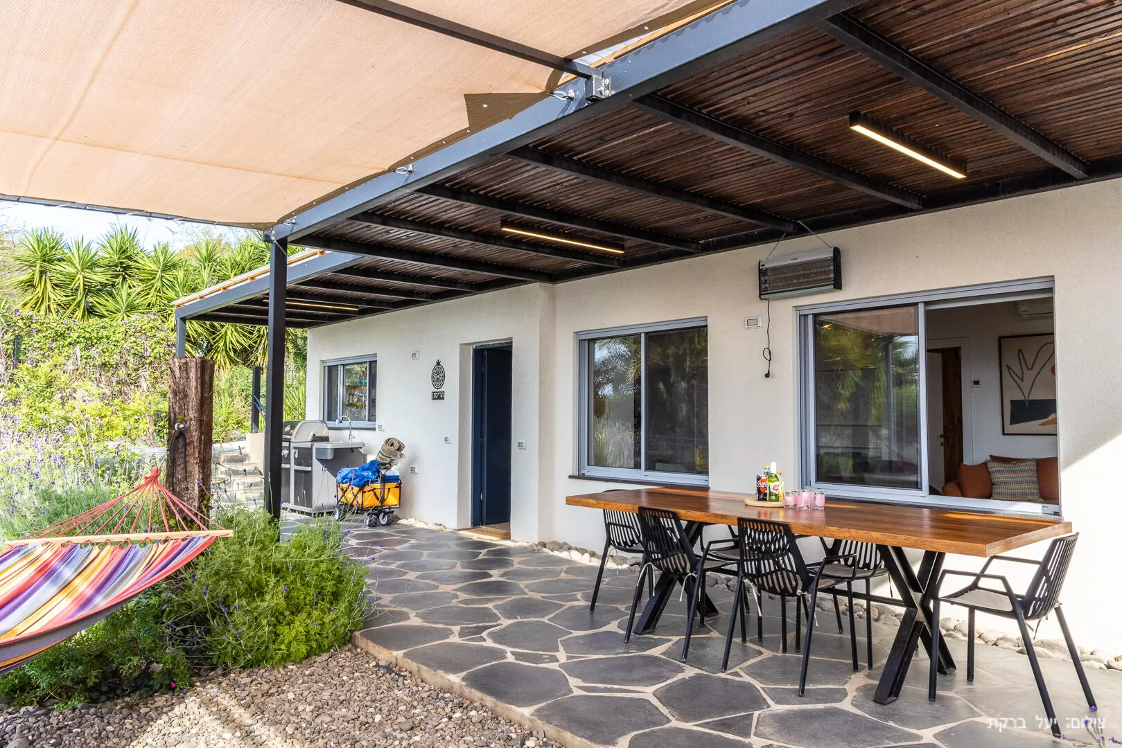 Next to the kitchen is a cozy dining area, and another one on the outside balcony (including a designated picnic table for children), next to which is a charcoal barbecue. If it happens and you've arrived here from a long journey with hungry children - then the hosts will be happy to pamper you with a package called "closing a corner" - a package of pasta, flakes and rice with tomato sauce, so you can close this corner in no time.