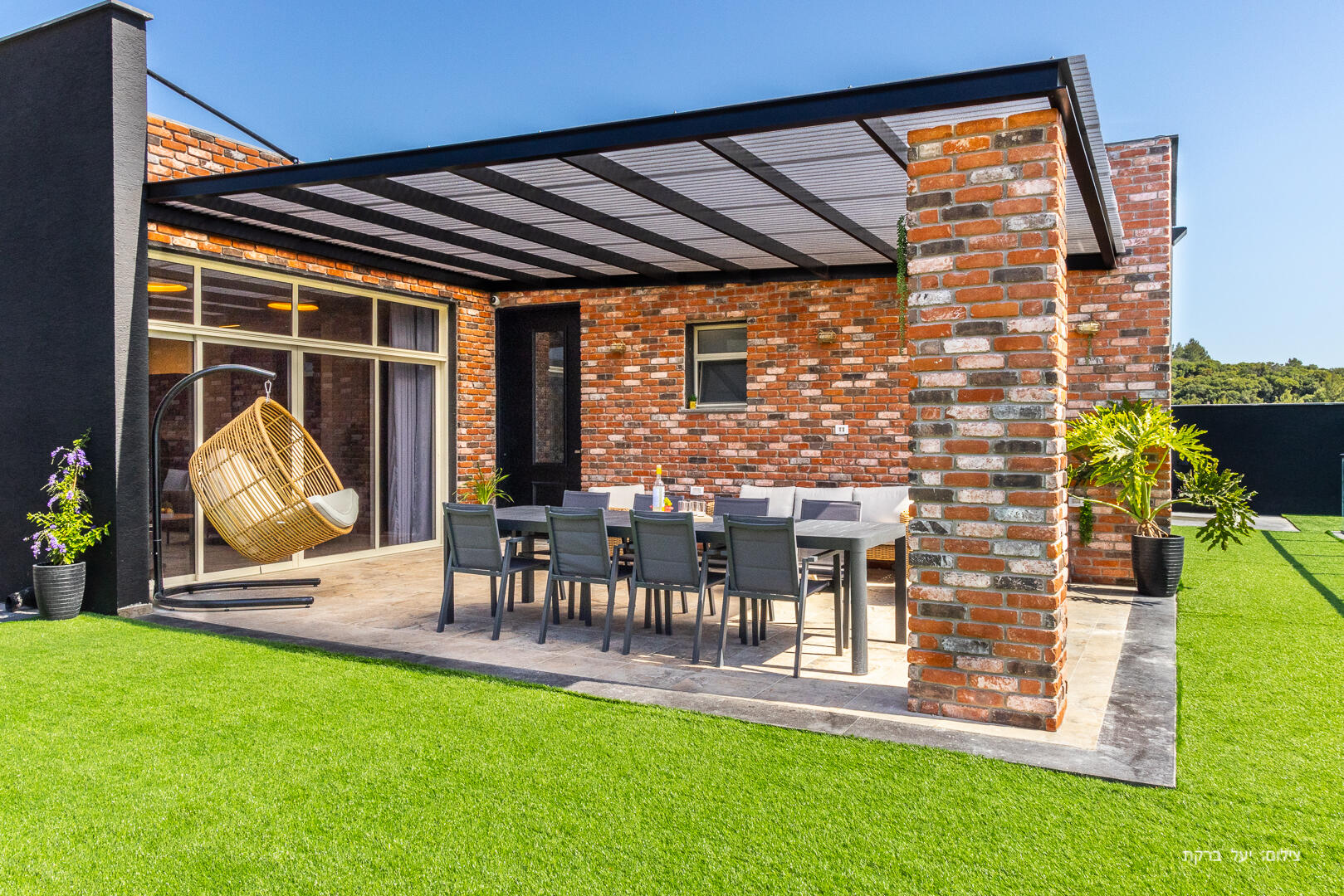 The creator's villa is located in the extension of Moshav Yaara in the Western Galilee. The location at the end of the street allows a view of an open landscape that reaches to Keshet Cave on one side, and passes through green forests until the eyes meet the sea. The walls of the villa are painted with an unusual black splash, its impressive outdoor area is paved with polished concrete, and the look is intriguing, slightly dramatic, and certainly unconventional. The contrast between nature and the mountains and a modern and edgy villa is absolutely refreshing.