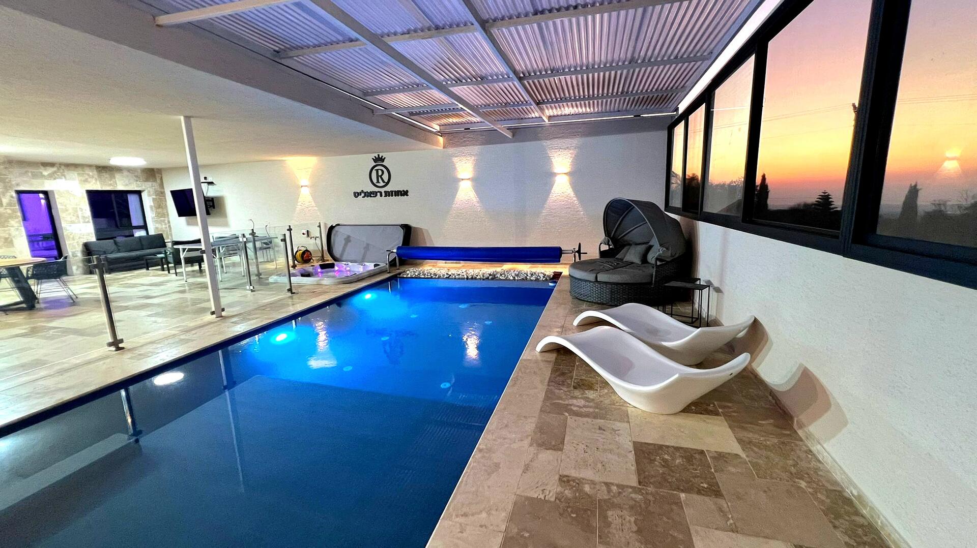 The estate has a practical kitchenette that is suitable for light cooking, but if you want to cook real meals - you can do so in the wide and well-equipped outdoor kitchen next to the beautiful pool. And speaking of the pool, it is not only beautiful but also suitable for children (under supervision of course) - there is a safety fence and an inner paddling area inside the pool, which allows them to enjoy the water without entering the depths. Next to the pool, there will be a spa jacuzzi sunken into the floor, which you can jump from and to, and vice versa.