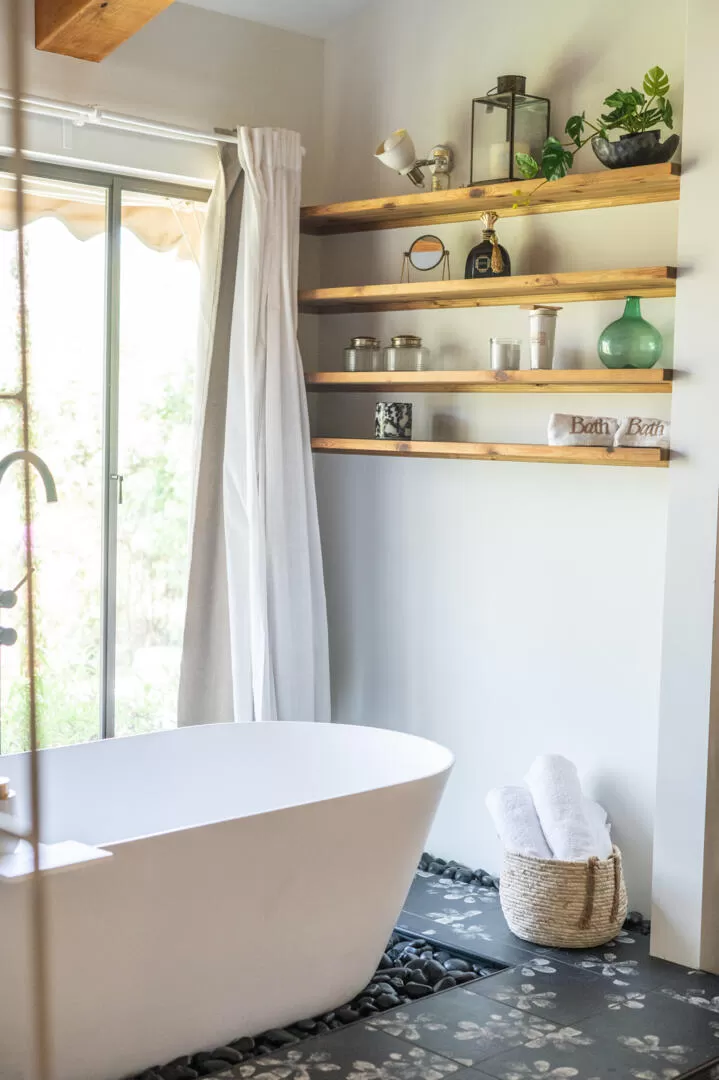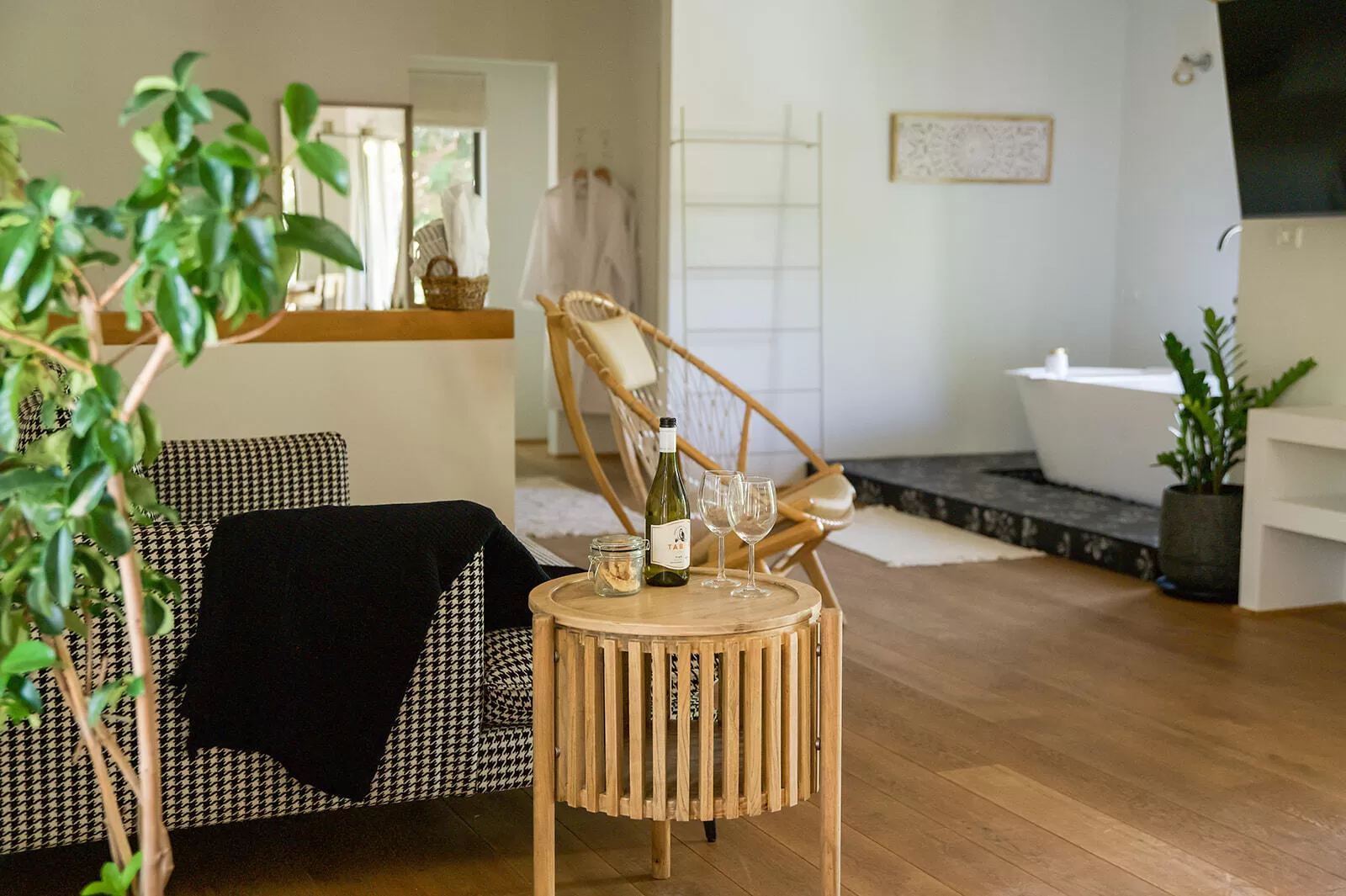The suites are spacious and very pleasant, designed in a rustic boutique atmosphere, one that relaxes us as soon as we enter them. In the suites there is a great combination of clean white tones next to the warm wood that stands out in its presence, whether in the parquet on the floor, in the shelves, in the thick beams in the ceiling, and in general in the quality furniture. In "Neta" and "Thelma" there is an indoor jacuzzi in the cabin space, and in the double "Alona", an impressive white "free standing" bath will be waiting for you on a raised platform, on the side of the window overlooking the courtyard. The hosts took care of curtains that preserve privacy, and pleasant lighting in exactly the right places. The double bed is wide and comfortable, and treats of wine, beers, and coffee from the machine will await you in each suite.
