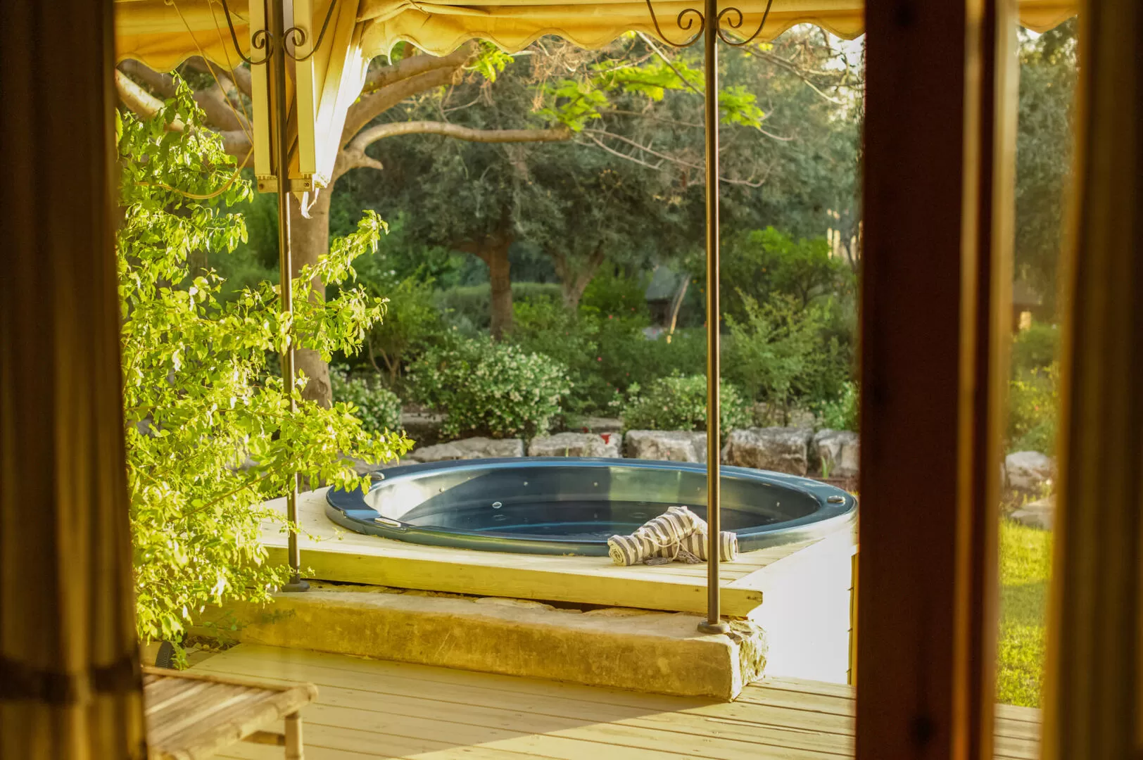 Outside, each suite awaits its own private world, which includes a spacious yard full of spices, a green lawn, trees and flowering plants, pleasant seating and dining areas, a fun hammock, and the pampering bonus - a private spa jacuzzi. From the Neta and Thelma suites you can enjoy the view of the Sea of Galilee, and from all three suites you will find a path that will lead you between the olive and date trees, and under the large vine that sends vines everywhere, and indulges in sweet grapes in season.