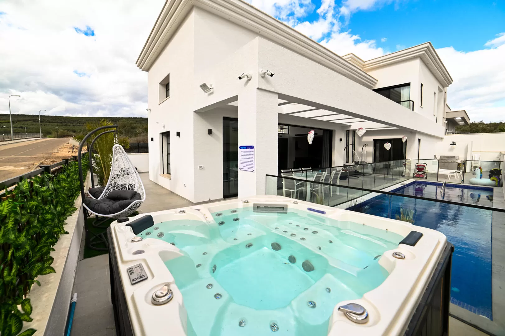 This is his season - a large outdoor jacuzzi with relaxing massage currents