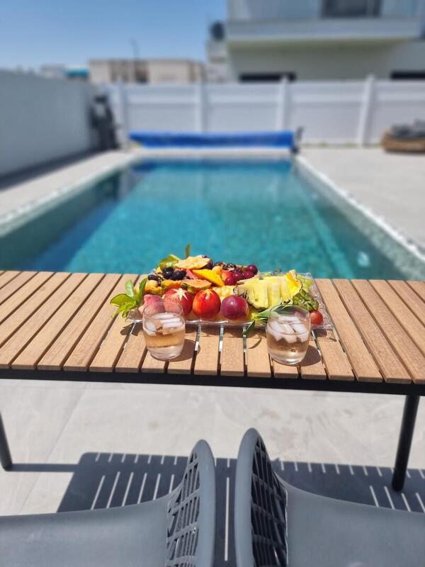 We stayed in both units and therefore had complete privacy. The pool is really fun and the place is polished. We received plenty of towels for the shower and also towels for the pool. There are some childhood illnesses, because these are brand new B&Bs. For example - the door handle that leads from one of the suites to the pool complex falls off, the smoke detector was activated for no reason at night. The shower is great, but there was a lack of soap (in one of the suites there was no soap at all, in the other only for the hands) and there was a lack of a hanging device for the toiletries - not everyone can bend down... In addition, you should think about the kitchen equipment: serving utensils, salt, pepper, oil, etc. were missing . Provided: Starbucks coffee capsules, milk, sugar, coffee and tea (no sucrose). The refrigerator is large and excellent, the microwave is placed too high. All in all we had a great time