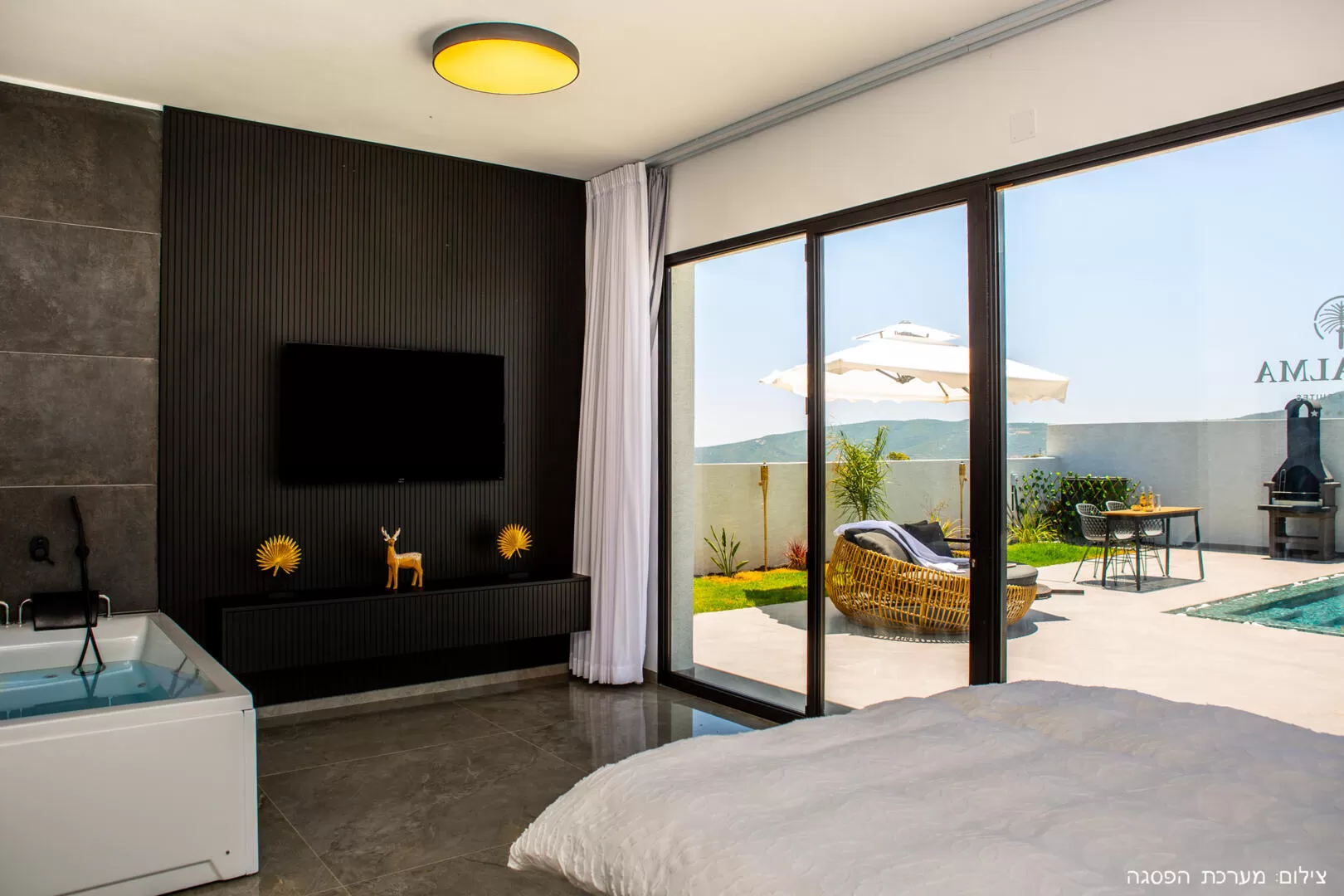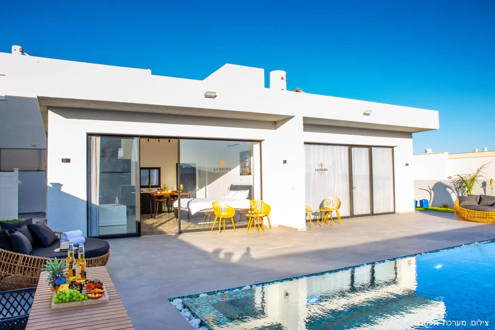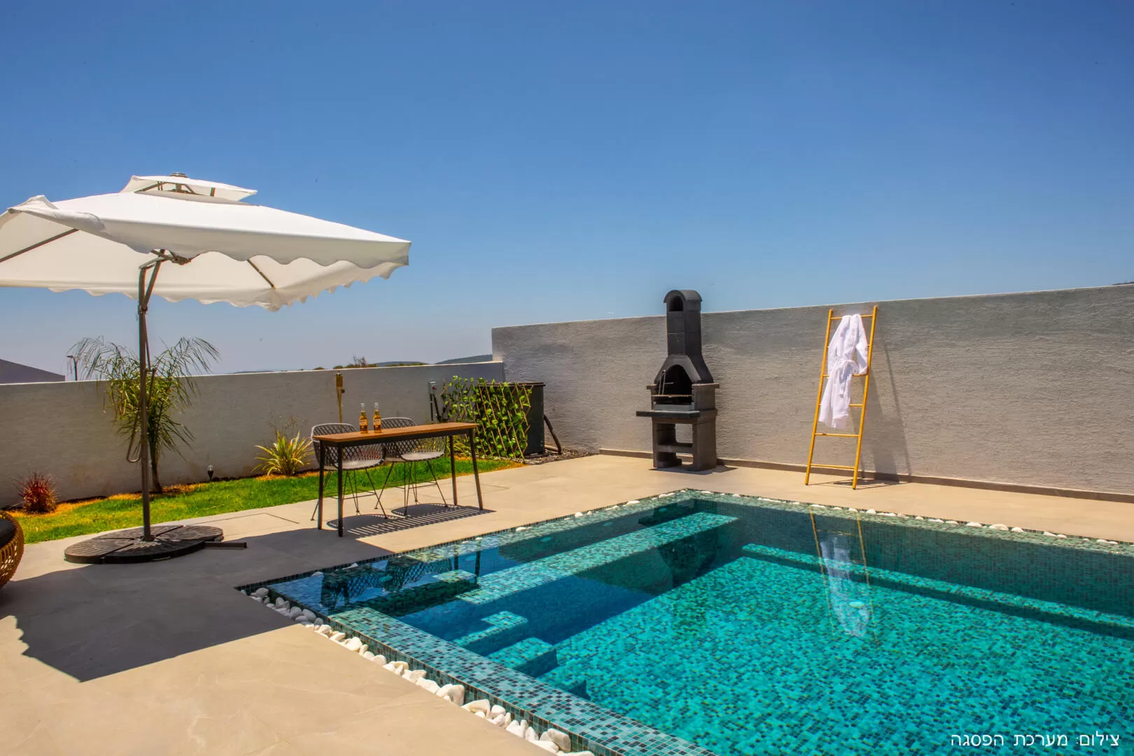 We stayed in both units and therefore had complete privacy. The pool is really fun and the place is polished. We received plenty of towels for the shower and also towels for the pool. There are some childhood illnesses, because these are brand new B&Bs. For example - the door handle that leads from one of the suites to the pool complex falls off, the smoke detector was activated for no reason at night. The shower is great, but there was a lack of soap (in one of the suites there was no soap at all, in the other only for the hands) and there was a lack of a hanging device for the toiletries - not everyone can bend down... In addition, you should think about the kitchen equipment: serving utensils, salt, pepper, oil, etc. were missing . Provided: Starbucks coffee capsules, milk, sugar, coffee and tea (no sucrose). The refrigerator is large and excellent, the microwave is placed too high. All in all we had a great time
