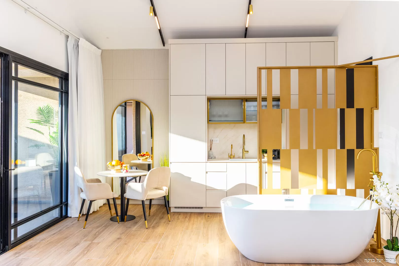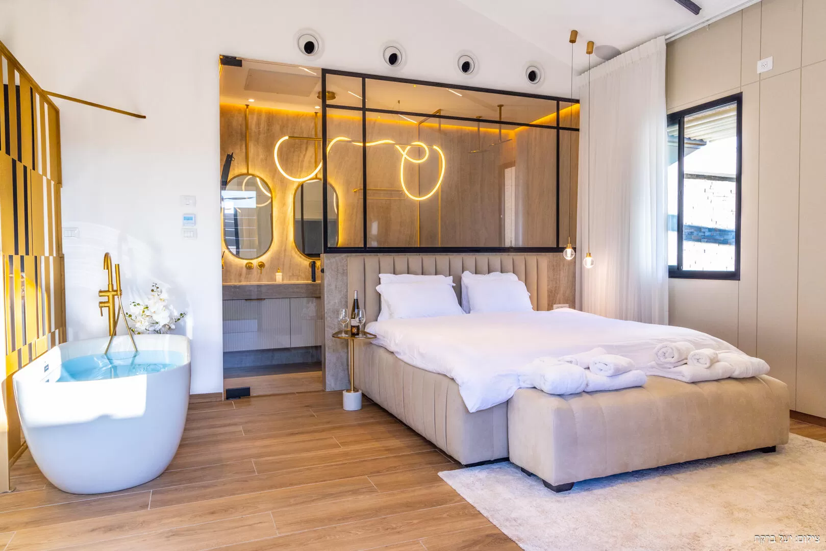 • Smart TV Attached Balcony Electric Fireplace King Size Double Bed (180) Wardrobe + Hangers Bathtub Netflix Air Conditioner +5