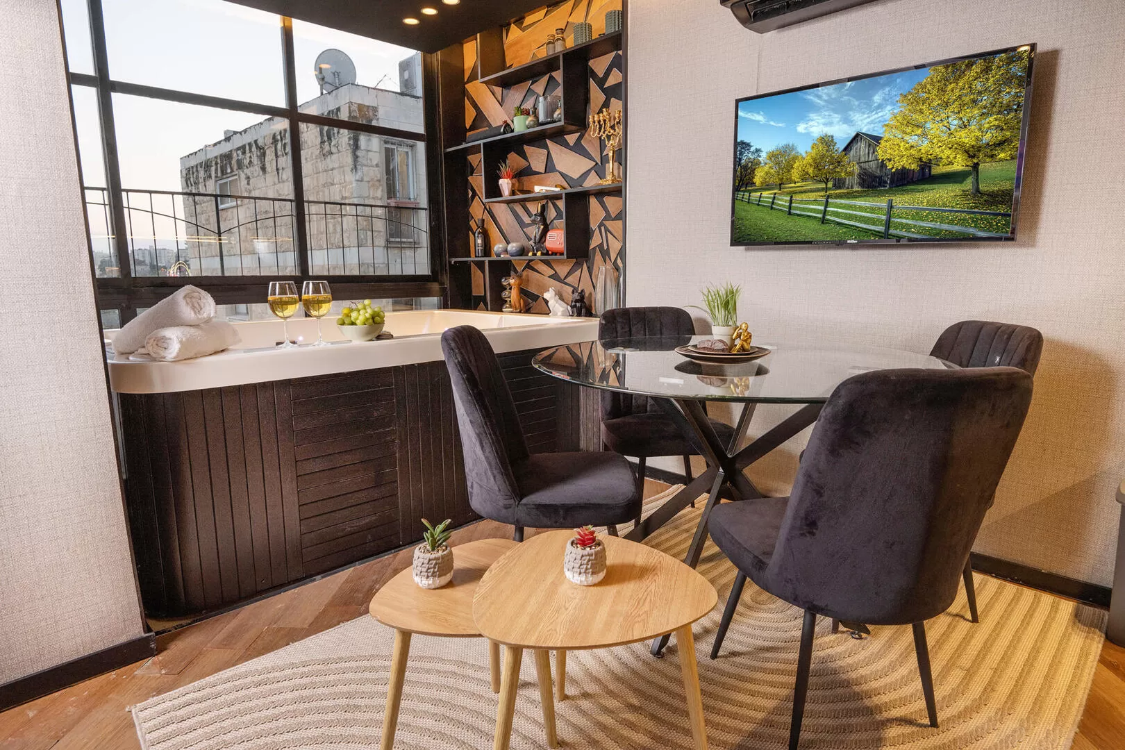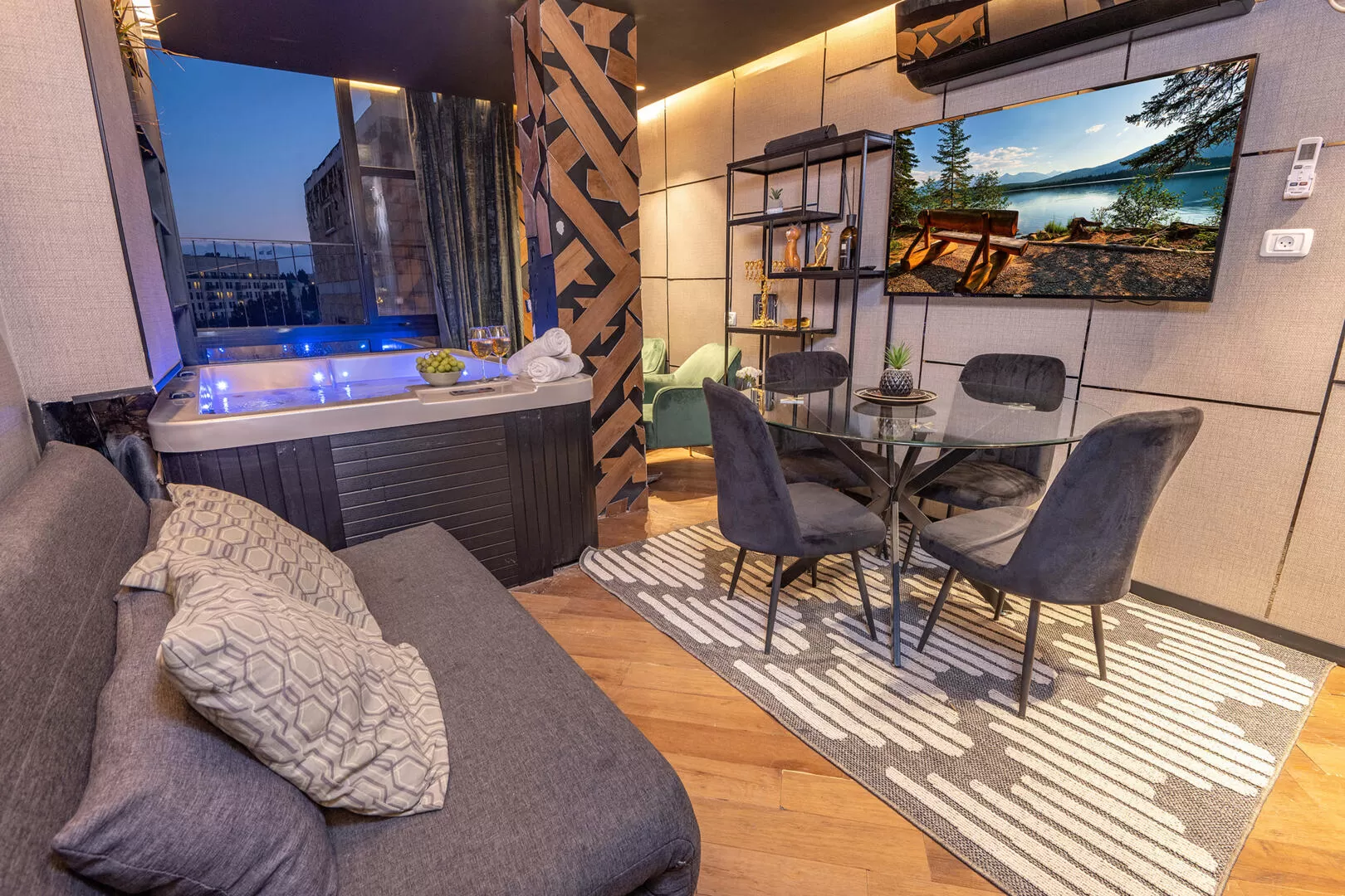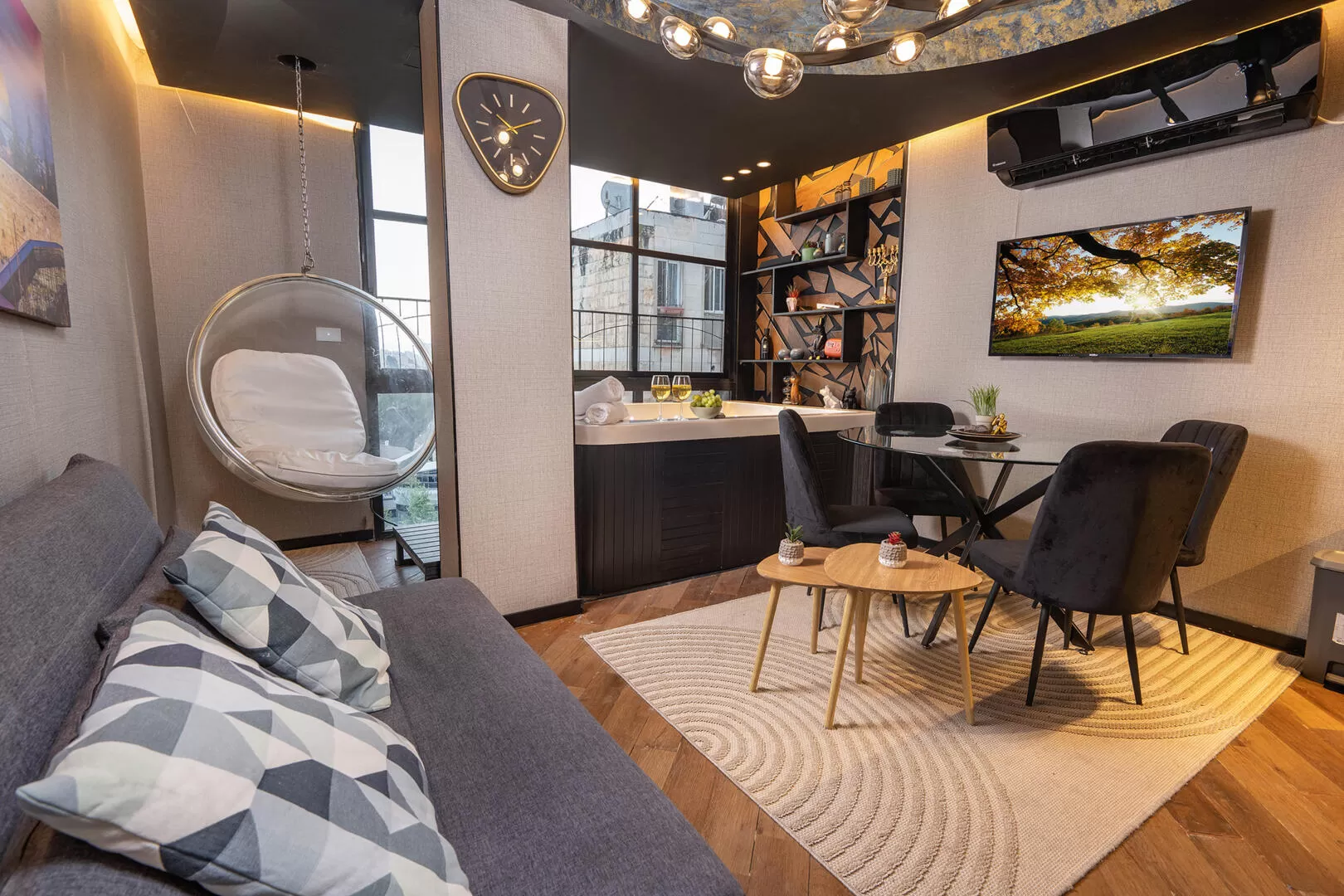 Dining Room Sofa Bed Smart TV Jacuzzi Spa Cellcom TV Air Conditioner+5