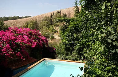 Outside, an intimate terrace with a seating area, for an afternoon of contemplation. On the lower level of the courtyard, another seating area is located under a thicket of vegetation and to the right is the highlight of the place: a "deck" terrace that brings you to a private swimming pool overlooking Mount Canaan. Needless to say, the pool is completely private and intended only for suite guests (the pool operates from May 1 to October 15).