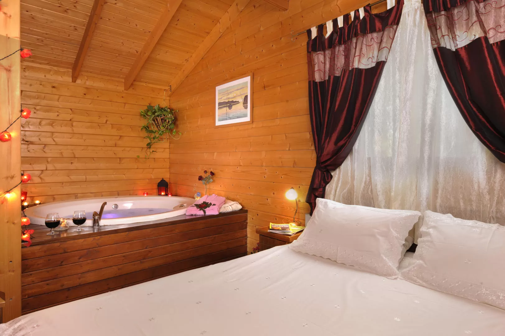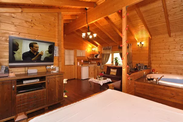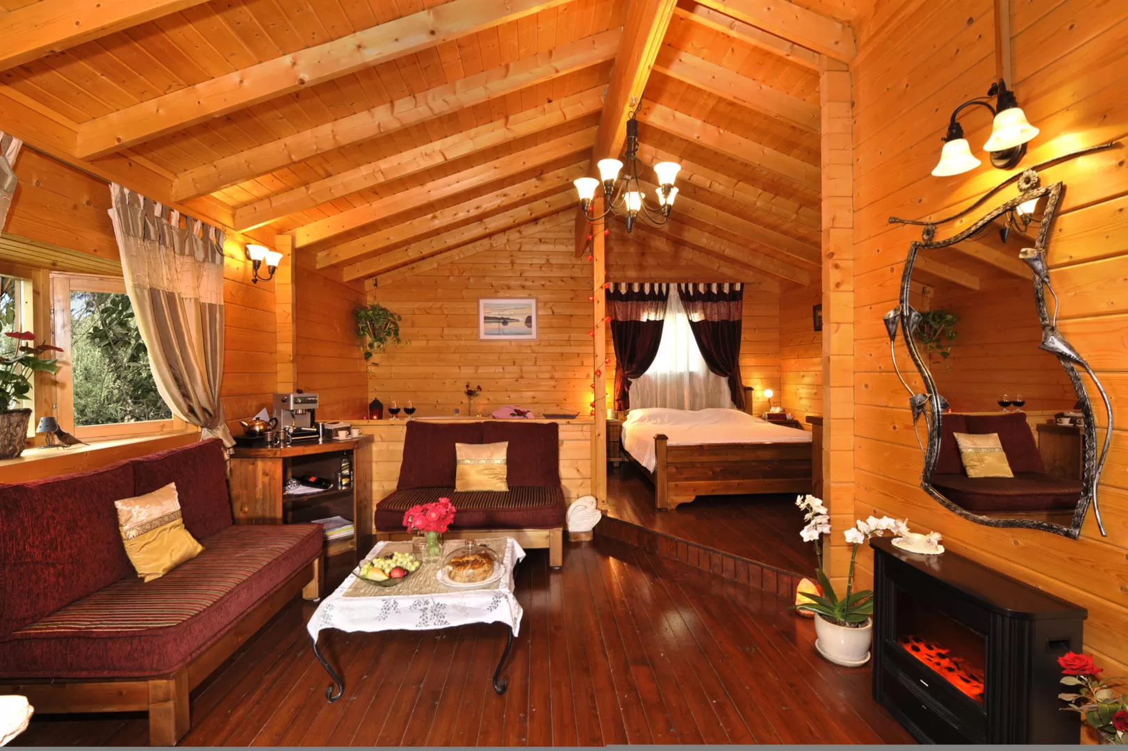 The identity cabins are well decorated with unusual items. They are clean and well-kept, and their orientation is definitely romantic - you will find flowers and lace curtains everywhere. The cabins (identical) have two spaces - in the large space there is a dressing area and a dining area adjacent to a graceful kitchenette and the other is intended for sleeping. The climate control is carried out by air conditioners and an electric fireplace.