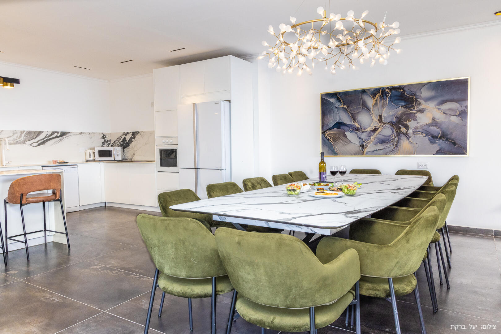 The three "Royal" suites exude luxury from every corner. There is full equipment here, and a kitchen that exudes luxury and comfort. A large area in the suite is dedicated to a spacious closet. The black porcelain floor is a bright contrast to the white furniture, and together they create a striking design line.