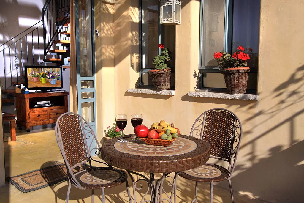 Get a picture: Spring afternoons in a quiet Galili moshav. In a large, blooming garden, with beautiful stone paths winding through it, a middle-aged couple kneels, busy sowing/weeding/whatever, to make the garden look like a million dollars. Among the flowers, two yellowish suites peek out, cute and very private, with vaulted Mediterranean-style roofs, with the garden reaching right to their doorstep. And the garden doesn't stay in the garden: almost everything served here for breakfast and dinner (for those who book) starts in the garden or in Ruthie's kitchen.