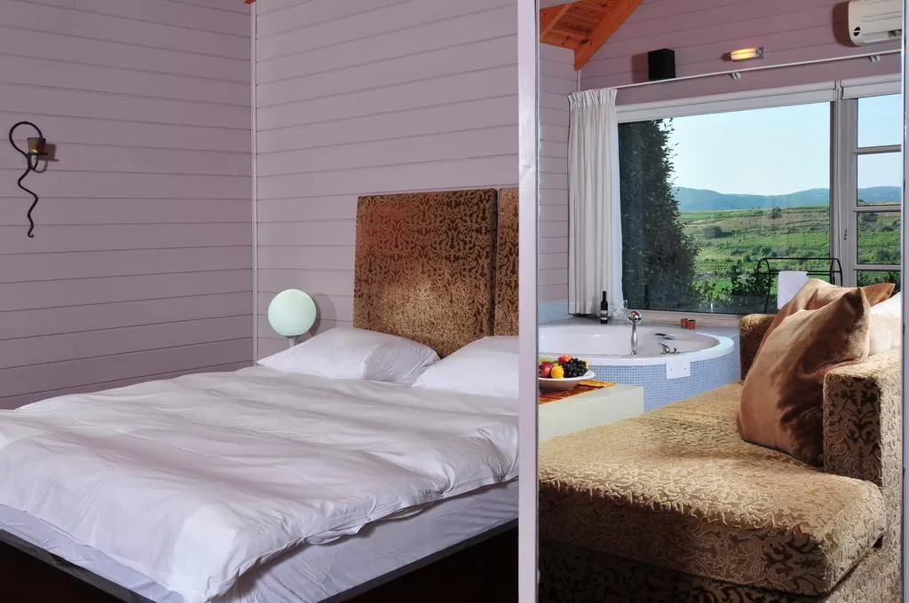 בקבוק יין, פירות העונה, עוגיות ביתיות, שוקולדים, מים מינרליים.