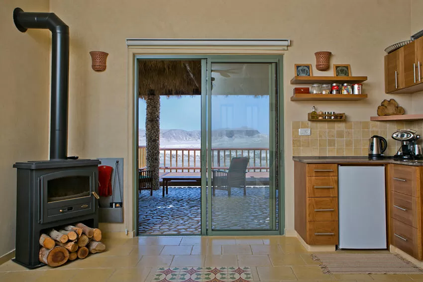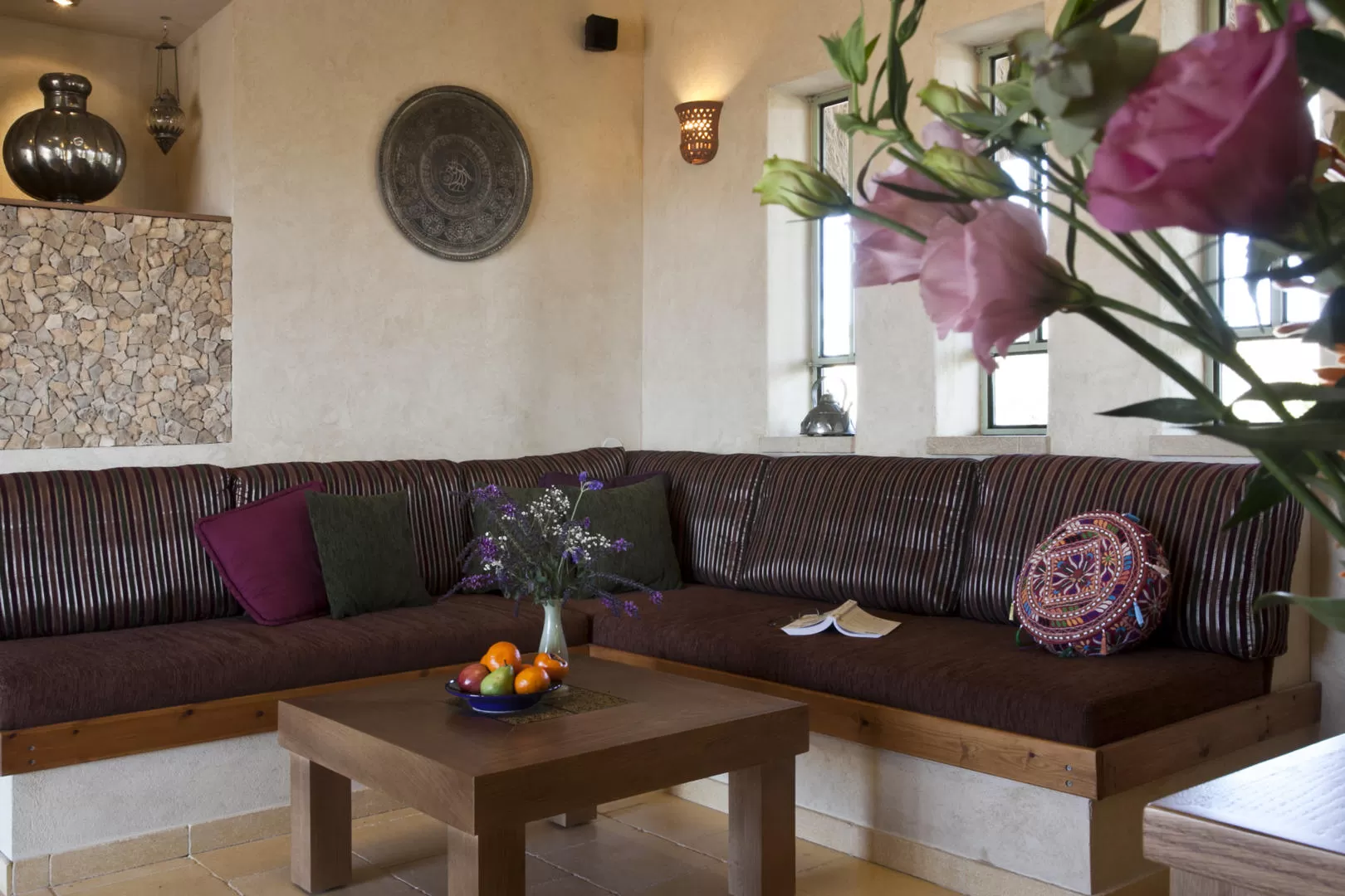 This suite is well secluded, for full privacy, surrounded by beautiful, biblical landscapes.  Nahal Tsofer can be seen from the west, as well as the cliffs of Nahal Ashus – a view of hills, wadis, acacia trees, desert plants and amazing winter sunsets.