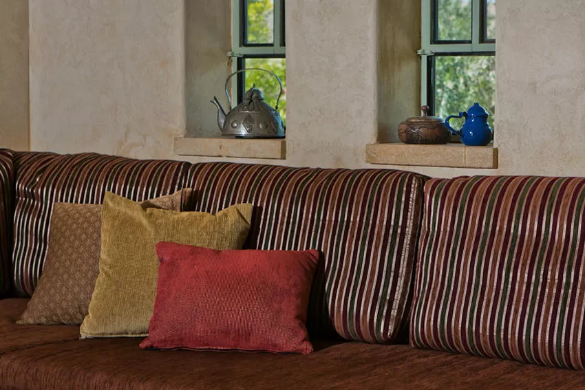There are 4 double suites and one double suite - with 2 bedrooms that is suitable for two couples of friends. The suites are far enough from each other - so that the special feeling of privacy in front of the view is preserved. The restaurant is located on the top of the hill, with a spectacular panoramic view of the landscapes of the reserve, in a building decorated with arches and shards with an oriental Moroccan inspiration. Breakfast and dinner are served in the restaurant, by reservation. More details here.