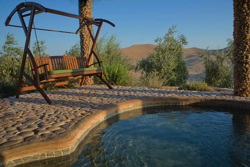 The living room opens onto a balcony with a plunge pool (heated and covered) and a "deck" equipped with bunk mattresses, where you can look far into the spectacular desert landscape. It is not easy to choose where to stay here...