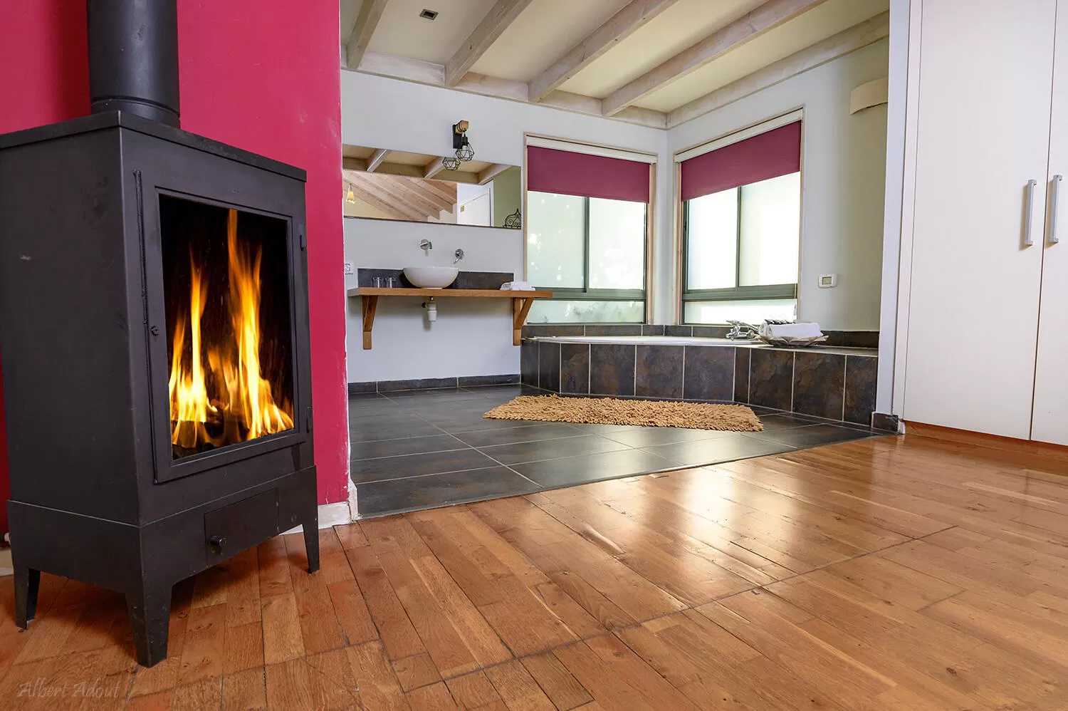 In the cabins "Autumn" and "Aviv" a young and dynamic atmosphere dominates, and the equipment includes a double corner jacuzzi and an extra large bathroom, with a semi-transparent wall. The solid "summer" and "winter" cabins, designed in a more restrained and conservative style, offer a spa jacuzzi in the yard.
