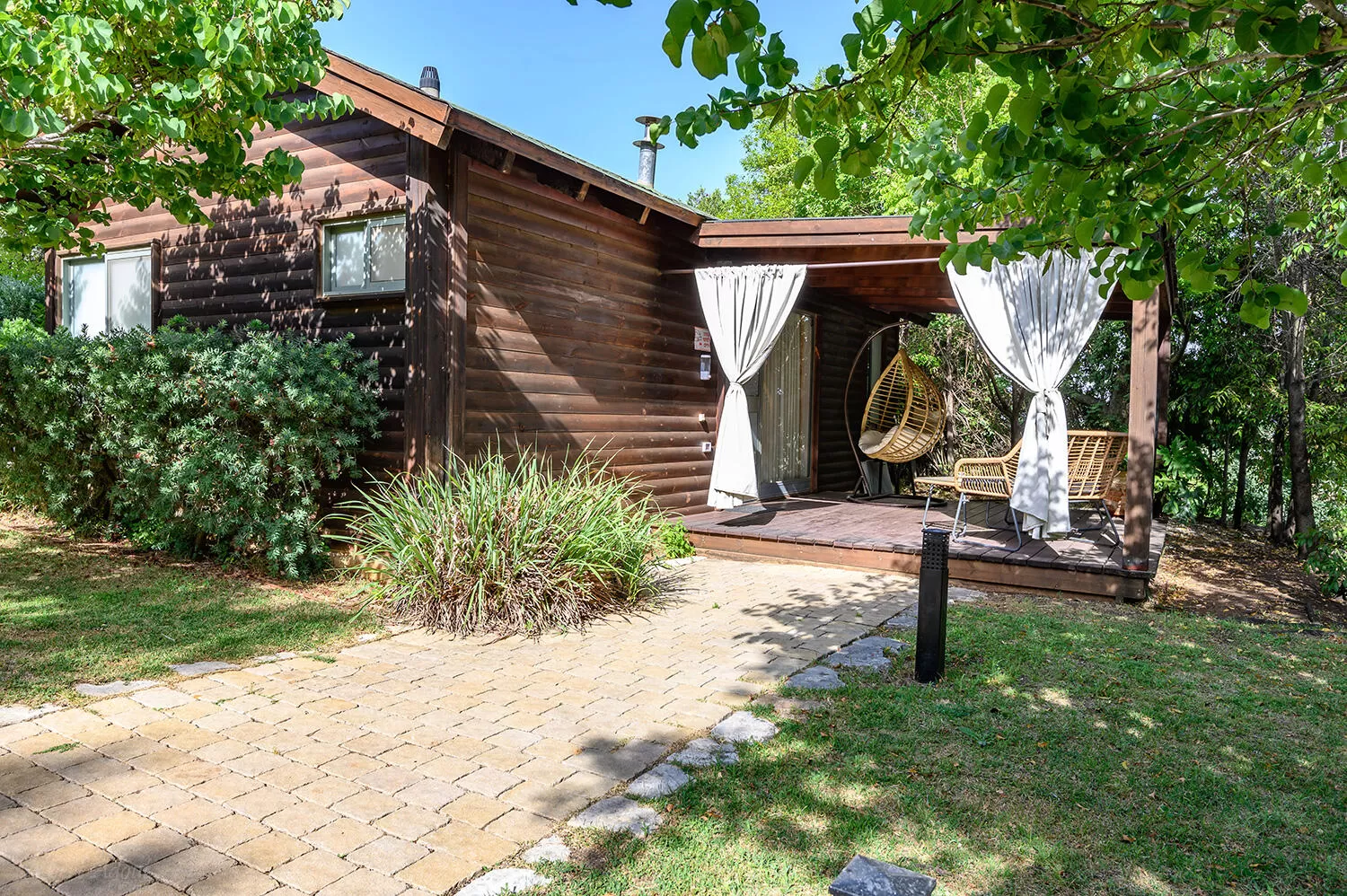 After a refreshing walk in the far outdoor complex I returned to the four wooden cabins named after the seasons. The cabins are located in a row, and covered seating areas, fruit and ornamental trees, green lawns and stone paths are scattered between them. The outdoor area adjacent to the units is inspired by "Fang Shui" and is designed to give the space a natural, relaxing and liberating atmosphere.