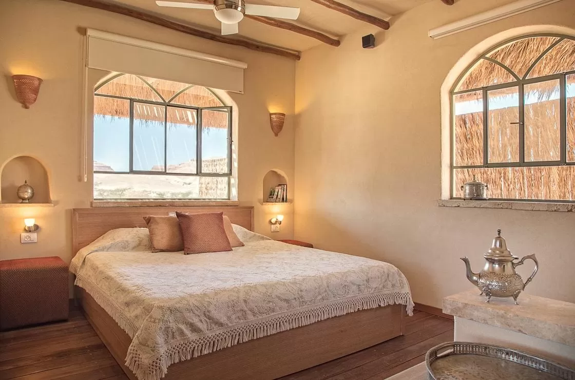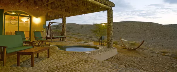 The "Ert Arba" complex is located on the edge of the tourist area of the settlement, at the end of a dirt road, and that's a good thing: the suites and the restaurant are located right on the desert, when nothing obstructs the view between the suites and the nearby Hoadi, which floods in the winter (a must see!).
