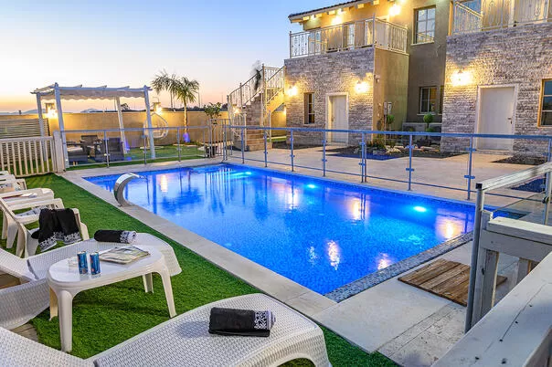 עם בריכה מחוממת במתחם