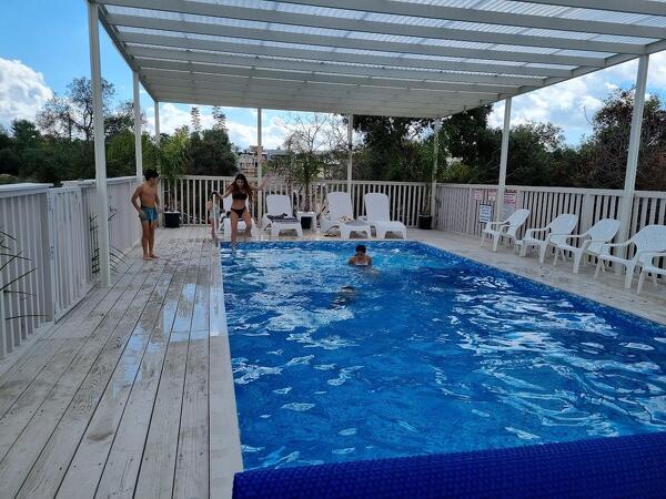 הבריכה המחוממת ביום חורף קר היתה פשוט תענוג. החדר מרווח, המקלחת כיפית, והבעלים הביא לנו שמן זית בערב בכפכפים. באנו ספונטנית ואין ספק שנחזור
