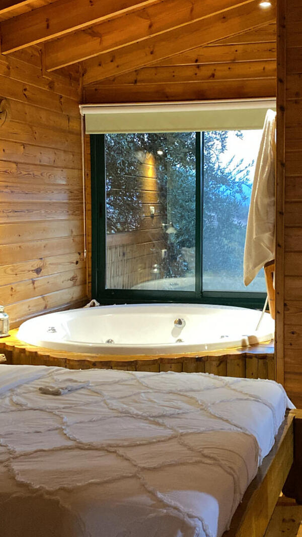 בקתת עץ מדהימה , פרטיות מוחלטת. ג'קוזי מפנק וסאונה פרטית. הבקתה מאובזרת במחשבה עד לפרטים הקטנים. הכיבוד מאוד מפנק וטעים: גבינות, יין , פירות ירקות ביצים ועוד. אזור יפהפה לטיולים רגליים בלי להזיז את הרכב. ברל'ה ואורנה המארחים אנשים מקסימים ואדיבים שדאגו לנו להכל. בקיצור אל תהססו. מקום מושלם לחופשה זוגית.