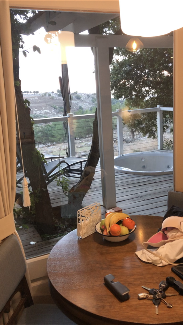 הכניסה למתחם נעימה ומיוחדת, מלא צמחיה, נוף מדהים ופרטיות. הסוויטה מעוצבת בטוב טעם תוך שימת לב לכל הפרטים הקטנים. כשנכנסנו לסוויטה, התרגשתי לראות כי גברת שרה המדהימה, קישטה את המיטה ליום הולדתו של בו זוגי, עם פרחים, בלונים,שוקולדים וסרט של מזל טוב. תמיד אמרתי שאלוהים נמצא בפרטים הקטנים וזו בדיוק שרה. הצלוחית על השולחן עם פיצוחים ופירות יבשים, בקבוק יין של יקב מילס( בגודל רגיל לא קטן!),2 כוסות יין, צלחת עם פירות, במקרר מיץ טבעי לבוקר, בקבוק בירה, חלב וכל הדברים הקטנים שחשובים כדי להפוך חופשה למושלמת ופרטיות מלאה. לפני העזיבה פגשתי את שרה, אישה מעניינת, חמה וציונית בנשמתה. היתה לנו שיחה עמוקה על החיים, על חקלאות, זוגיות וילדים, זו היתה סיומת לחופשה נהדרת, מעבר לחופשה הנפלאה האשה הזו נפלאה לא פחות. בהחלט אשוב בשנית!!! ממליצה בחום