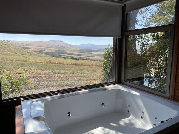 בקתה מרווחת ומעוצבת בטעם משובח מודרני ומינימליסטי עם כל הפסליטיס הנדרש ברמה איכותית- גם בחדר האמבטיה גם במיטת קינג סייז מפנקת.. דובדבנים מהגולן חיכו לנו במקרר לרענון מושלם אחרי הנסיעה הארוכה. ג׳קוזי מפנק וגדול בחדר מול קיר זכוכית שמכניס את הנוף המרהיב לחדר ויוצר חוויה יוצאת דופן ויחידה במינה. מסעדות טובות באזור וחבל ארץ יפהפה לטיולים. רוני המארח מקסים וזמין לכל בקשה. הזמנו עיסוי זוגי לחדר עם מטפלים מקסימים- חוויה מעבר לציפיות. היה נפלא❣️