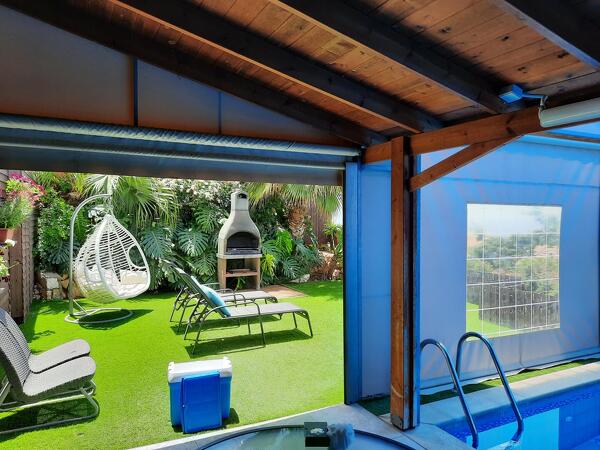 בריכה פרטית ענקית ומחוממת, ג׳קוזי חיצוני גדול ומפנק, מטבחון מאובזר היטב ונוח לבישול, מארחים אדיבים, מיקום מצוין ושקט, מיטה גדולה ונוחה.