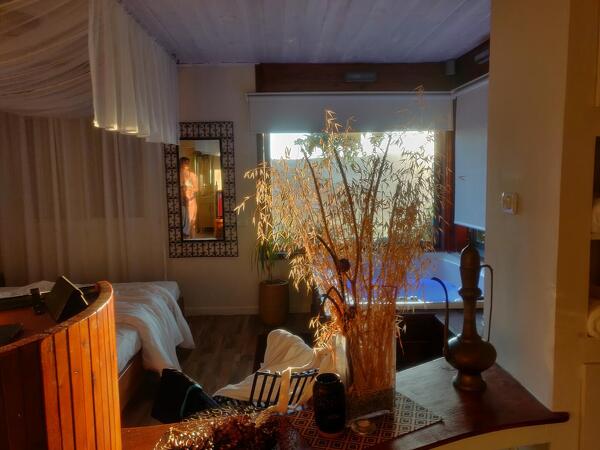 המקום נעים ומזמין. גינה נעימה ומוצלת עם צמחייה כאילו פרא היא שעושה את ההבדל. פינות ישיבה לרוב. ששוכחת מחוממת כיפית. ג'קוזי מקצועי בחוץ. בחדר היה בקבוק יין, מכונת קפה טוחנת פולים. כוס יין ומיצים במקרר. היה לנו רגוע ונעים מעל לציפיות. תודה.