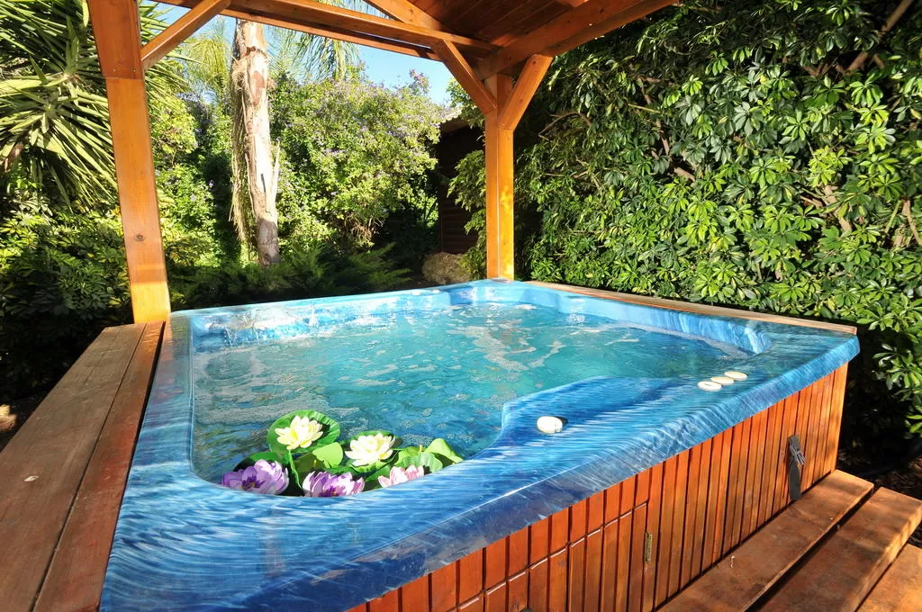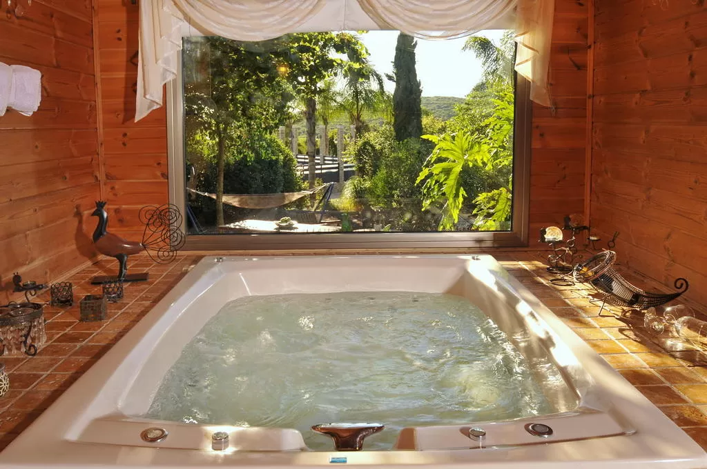 אנחנו עוברים בשבילים שמתפתלים בצמחיה, הרחק מבית המארחים, ומגיעים ל"קרחת יער" גדולה ויפה שבקתה במרכזה. "כל החצר הזאת שייכת לבקתה אחת?" אני שואל את ריקי וחושב שבמרכז הארץ כבר היו דוחפים לשטח כזה שני מגדלים, מרכז מסחרי וחניון. אז כן: לכל בקתה יש מתחם חוץ ענקי כזה שמציע בנוסף לפרטיות, גם פינת אוכל, ערסל, נדנדה ולא פחות חשוב- ג'קוזי ספא פרטי לכל בקתה ומקורה.