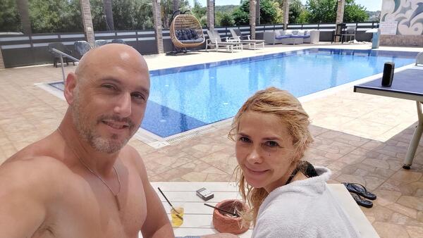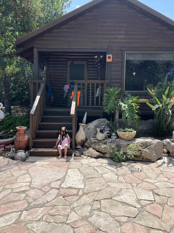 כשאני מצליח לקום (נראה אתכם עוצרים אחרי שתי עוגיות...), היא לוקחת אותי למתחם וכבר בכניסה אני מבין איזה צבע יהיה לביקור שלי. המון המון ירוק ממלא את השטח הגדול ש-3 בקתות זהות מציצות ממנו, ובריכה גדולה בנויה ומרשימה מאוד משקיפה אל נוף, נכון, הישוב בעל אופי חקלאי ושומעים מדי פעם קרקור של תרנגולות ממתחם סמוך, אבל בינינו- זה רק מוסיף לקסם הירוק הזה.