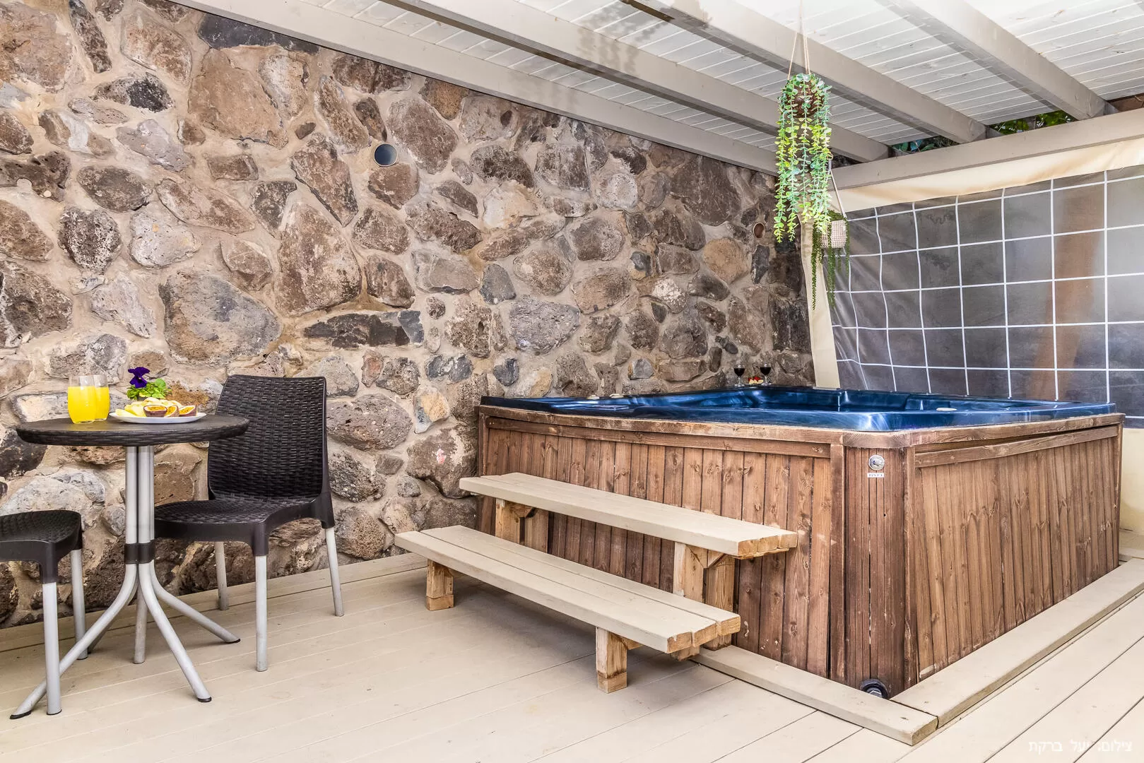 בריכת הרחצה והג'קוזי ספא החיצוני הינם משותפים לשני הצימרים ומיועדים לאורחי הצימרים בלבד.