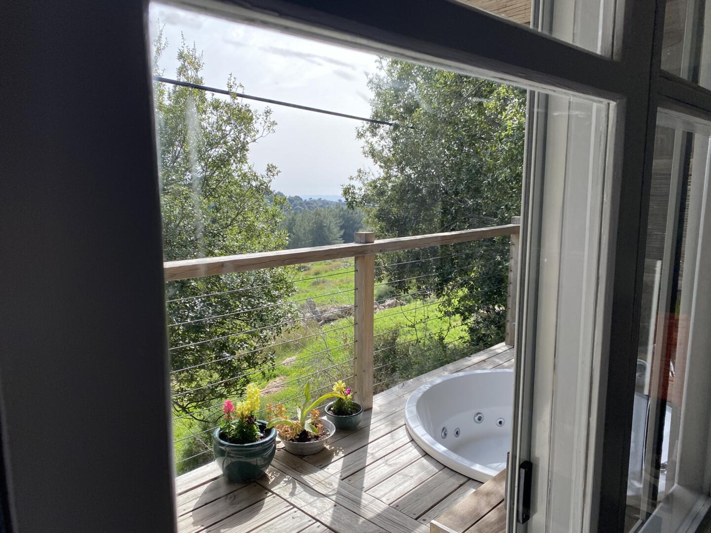 קמין עץ ומטבחון יפהפה בסגנון כפרי משלימים את האבזור. הג'קוזי (שאינו ספא) ממוקם "נכון" על קצה המרפסת המקורה, הטובלת בצמחיה מלבלבת.